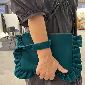 Härlig sammetsväska! Blixtlås upptill och ett handtag i sidan så att den kan bäras direkt som en clutch eller med handtaget.