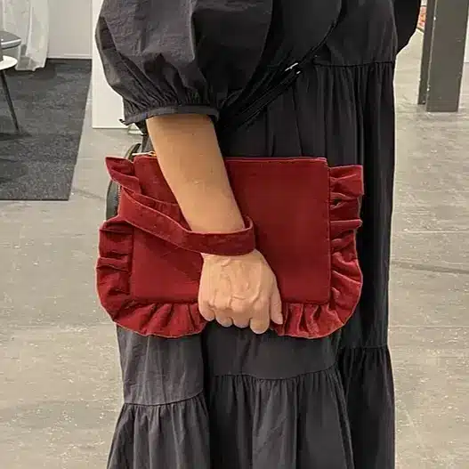 Härlig sammetsväska! Blixtlås upptill och ett handtag i sidan så att den kan bäras direkt som en clutch eller med handtaget.