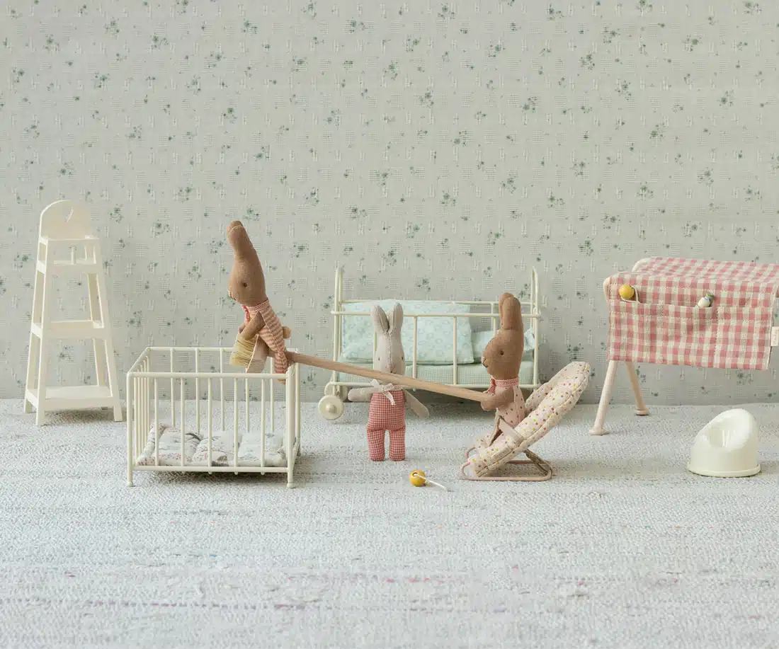 Detta är den minsta medlemmen i kanin-/kaninfamiljen. Glöm inte alla nödvändiga tillbehör till en sådan liten i huset, som barnvakt, dagisbord mm.