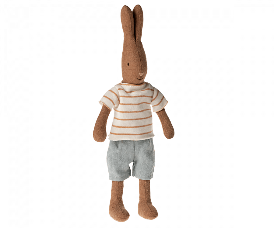 En klassisk kanin gjord av mjuka naturtyger som ger en härlig handkänsla och utseende. Storlek 1 kanin passar in i House of miniature och alla möbler i storlek mini och miniatyr. Kolla in klädkollektionen för att utöka kaninernas garderob.