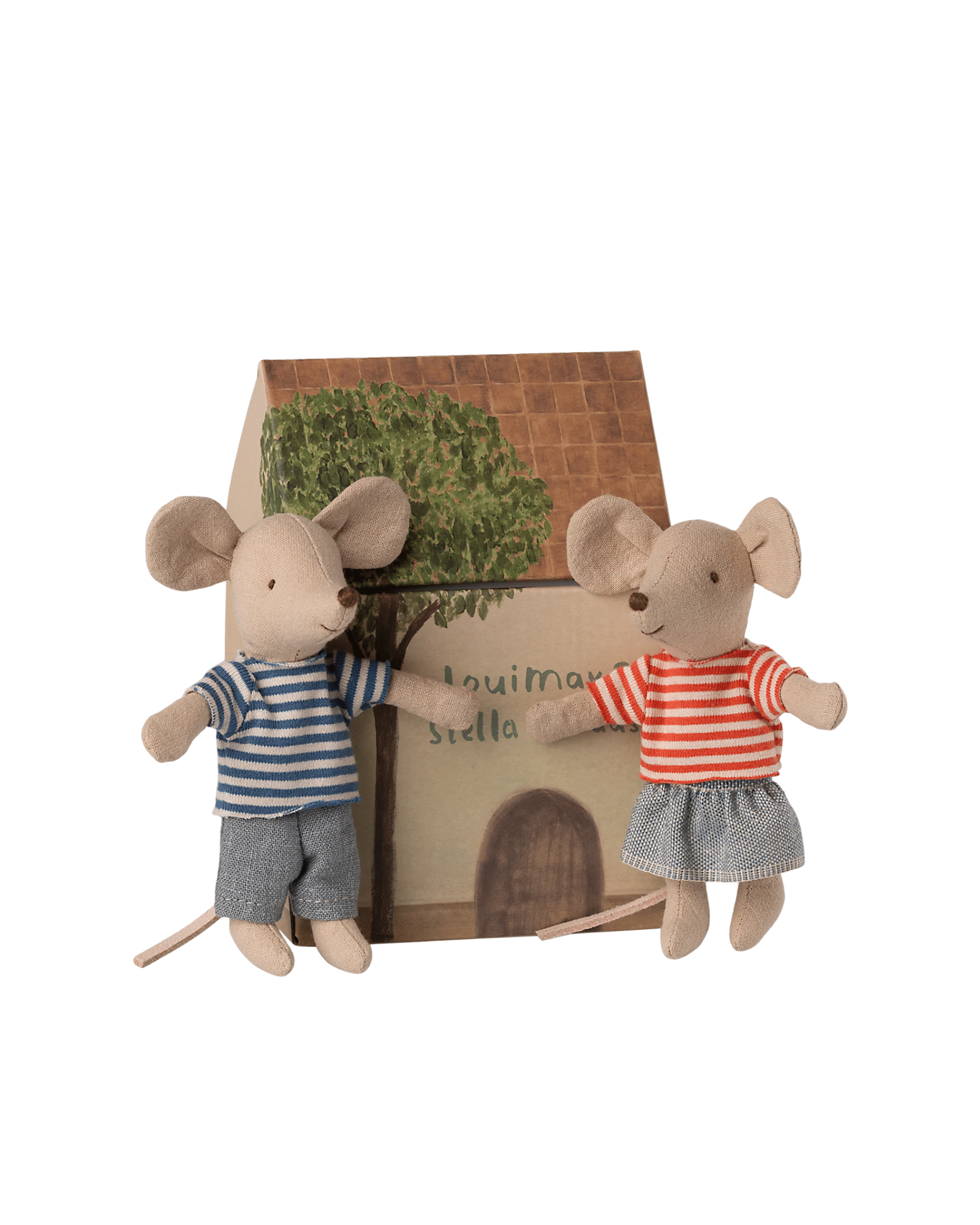 Upptäck Maileg LouiMax och Stella mjukisdjur mus – de charmiga små mössen som snabbt blir barnens favoritvänner! Dessutom är LouiMax och hans lillasyster Stella tillverkade i mjuk bomull och fyllda med återvunnen polyester och PP-pellets, vilket gör dem både mjuka att krama och hållbara för lek. Dessa små karaktärer är designade med stor omsorg, och detaljer som söta kläder och uttrycksfulla ansikten stimulerar barnets fantasi och kreativitet.