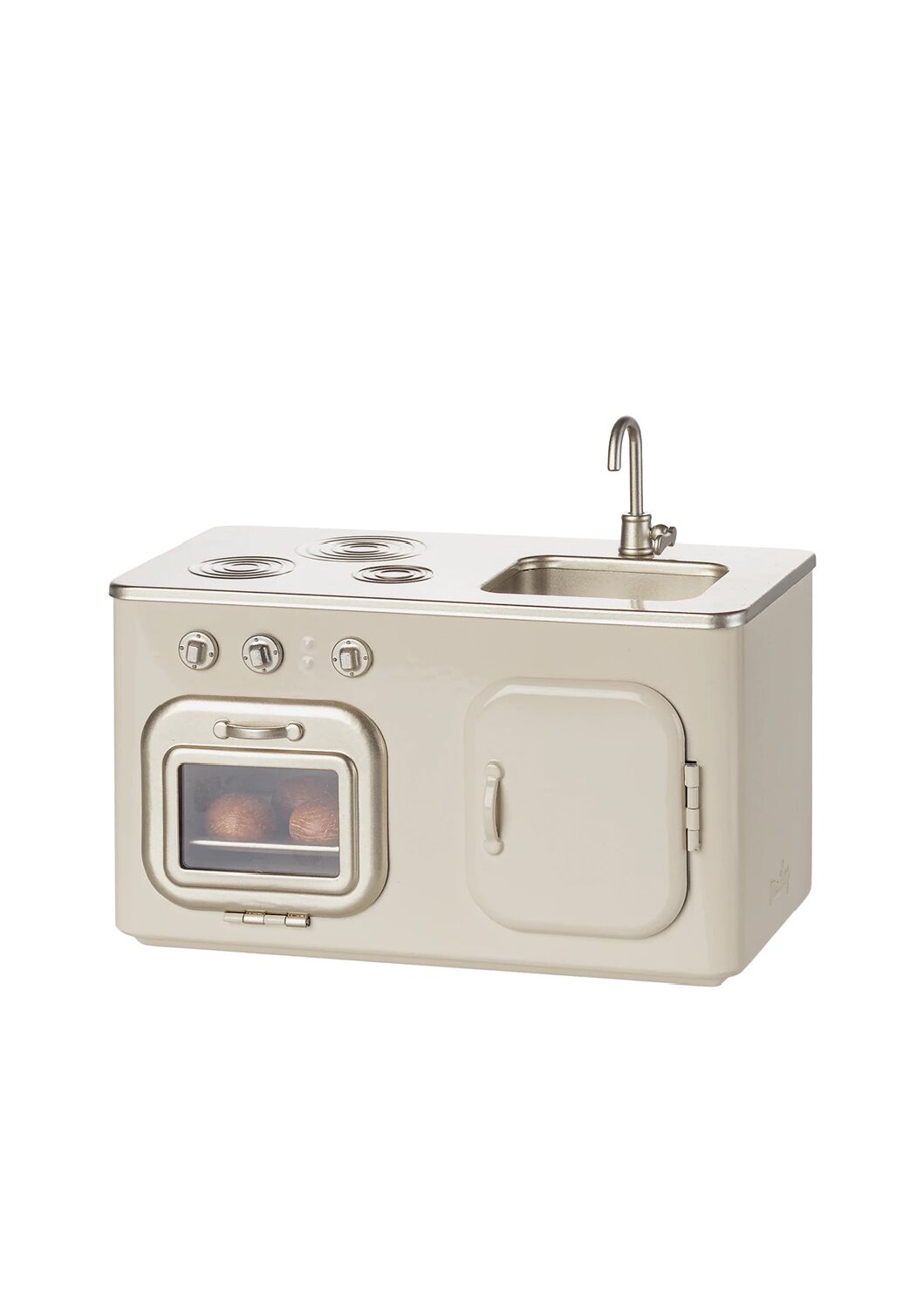 Ge din Maileg-dockhusvärld en extra touch av realism med detta charmiga miniatyrkök för Maileg-hus. Detta kök är perfekt anpassat för Maileg House och blir snabbt en favoritplats för timmar av lek och fantasi. Till köket hör tre nybakade små bullar som står i ugnen och väntar på att serveras – en detalj som gör leken ännu mer levande och inspirerande.