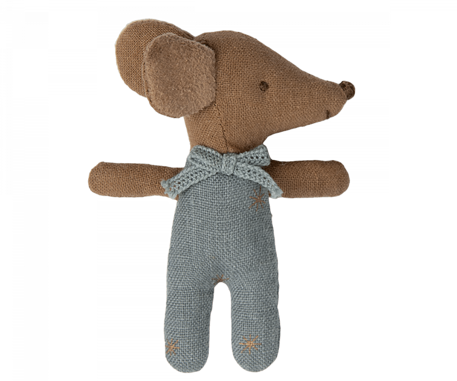 Ett klassiskt Maileg-objekt. Denna mus är redo för timmars lek och sover gott i den lilla tändsticksasken. Kläderna och sängkläderna är gjorda av mjuka tyger med unika tryck i vackra färger.