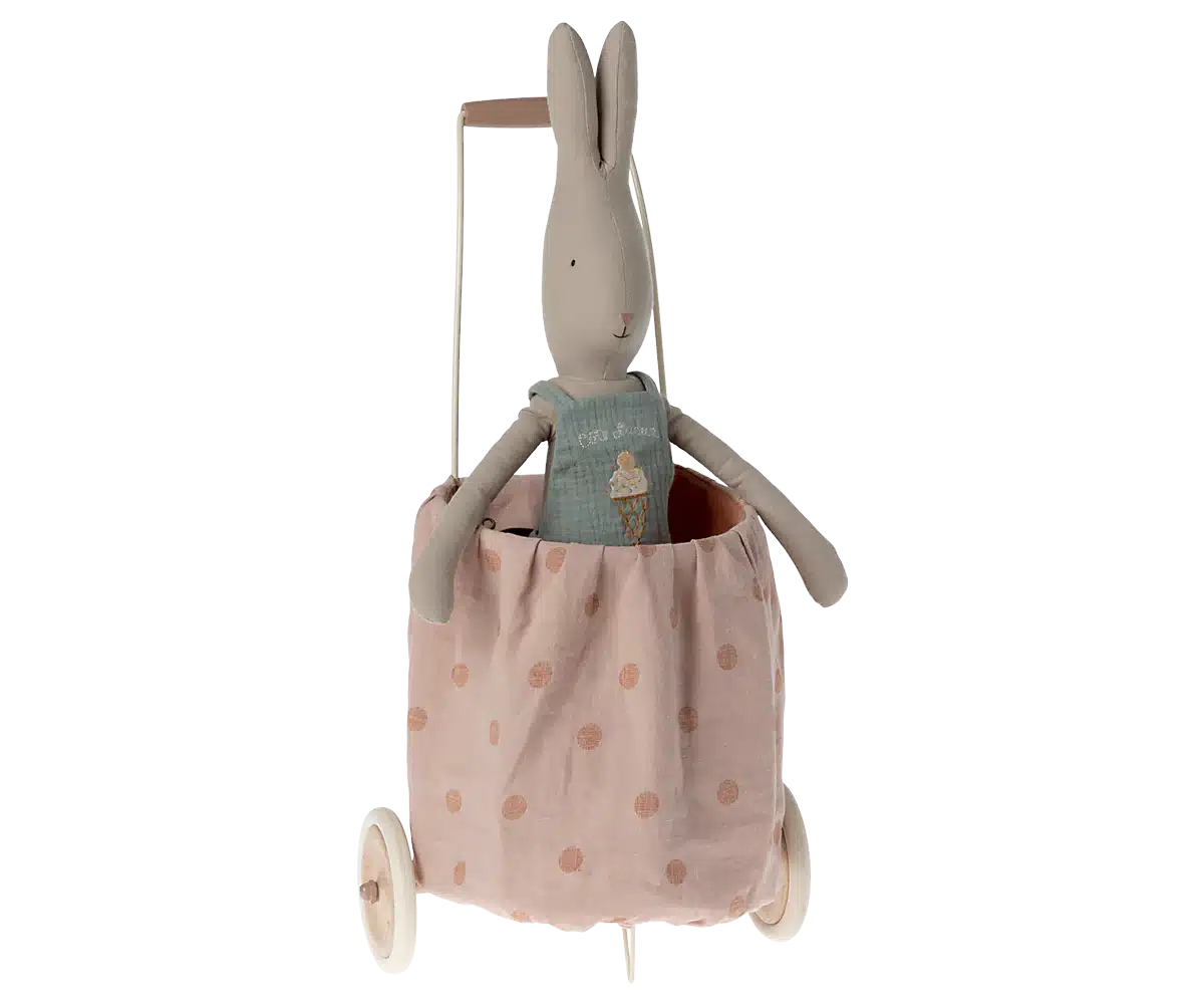 En vagn är nödvändig för att bära runt alla dina mjuka vänner och leksaker. Vagnen är klädd med ett naturligt tyg som har en mjuk beläggning som hjälper till att hålla tyget rent. Tygdelen är lätt att ta av och tvätta. Från 3 år