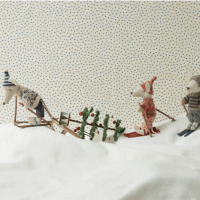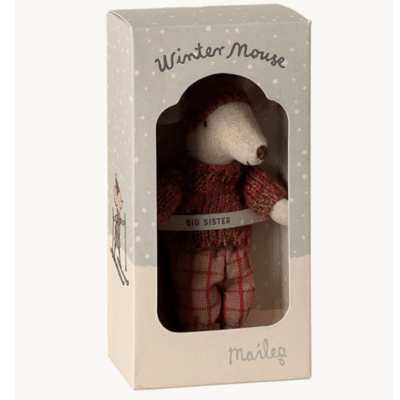 Maileg storasyster mus med skidor. Mailegs leksaker är alltid vackra!