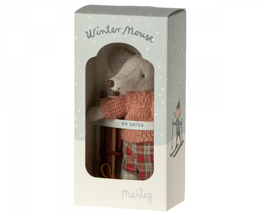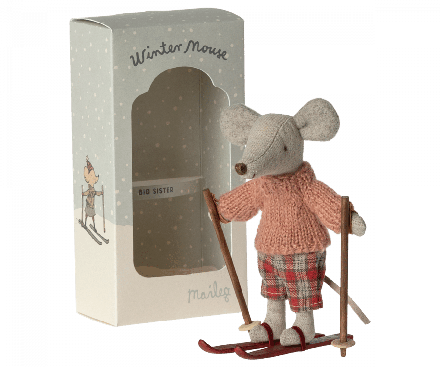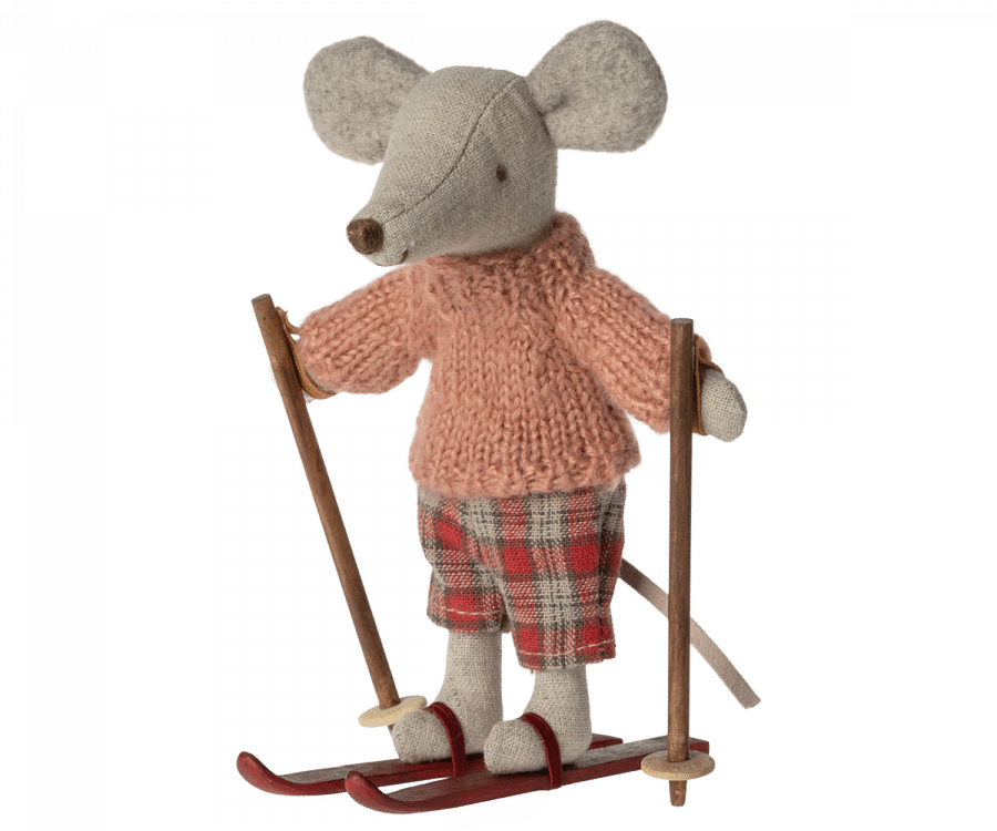 En mus redo för timmar av skoj i backen under den kalla vintern. Varje lekset innehåller en varmt klädd mus med ett par skidor och stavar. En rolig detalj är öronen som är gjorda så att de ser ut som att musen har öronvärmare på sig.