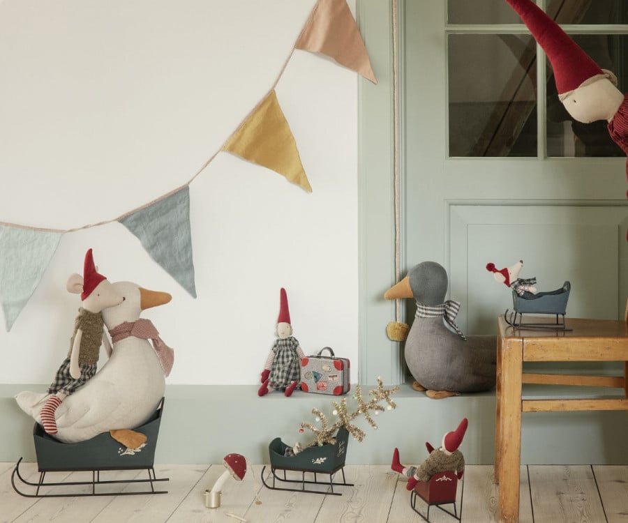 Varje släde är handmålad, vilket ger den en unik charm där små variationer gör varje exemplar helt unikt. Den robusta designen och de fina detaljerna gör släden till ett perfekt tillbehör i Maileg-världen eller andra miniatyrmiljöer.