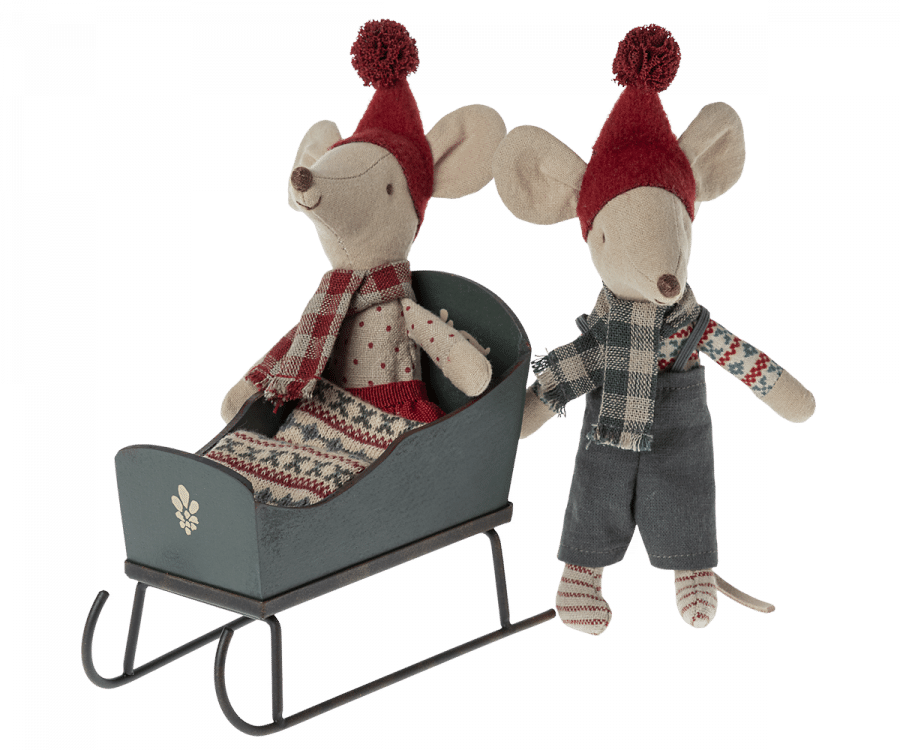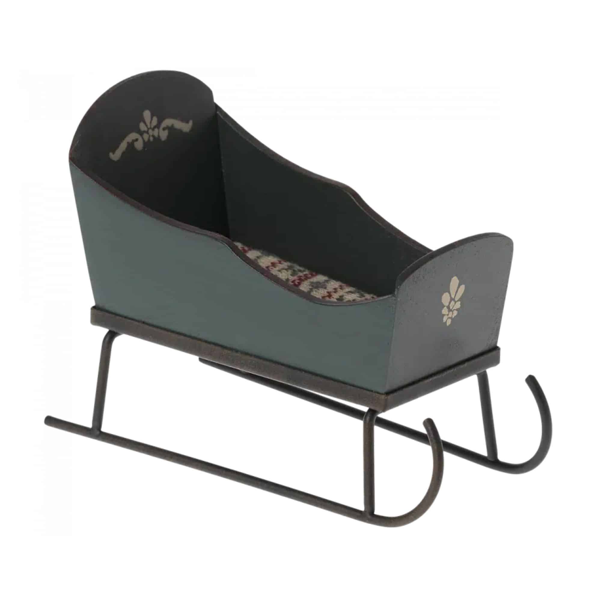 Gör vinterleken komplett med denna underbara släde i grön kulör, speciellt framtagen för de små mössen och deras vänner. Släden är utrustad med en mjuk madrass som håller passagerarna både varma och bekväma under fantasifulla vinteräventyr.