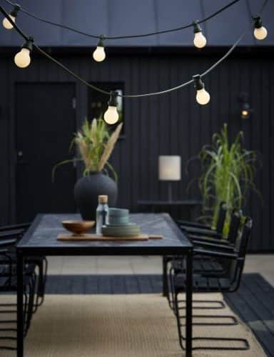 utomhusbruk men kan även användas inomhus. IP44. Ljusslingan säljs utan ljuskällor. 10xE27 sockel. Max 10x15W. Vilket betyder att du kan köpa till de glödlampor du vill och ändra utseendet på ljusslingan med enkla medel. I
