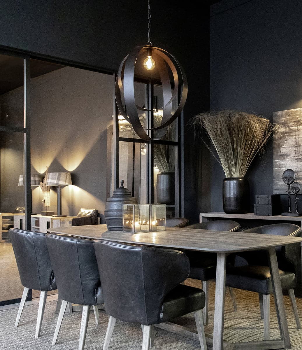 Svart stål. Längd på kedja 120 cm. 1 ljuskälla E27, max 40 W. Ljuskälla ingår ej.