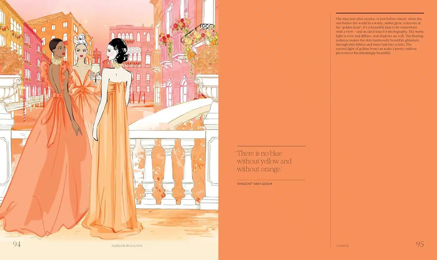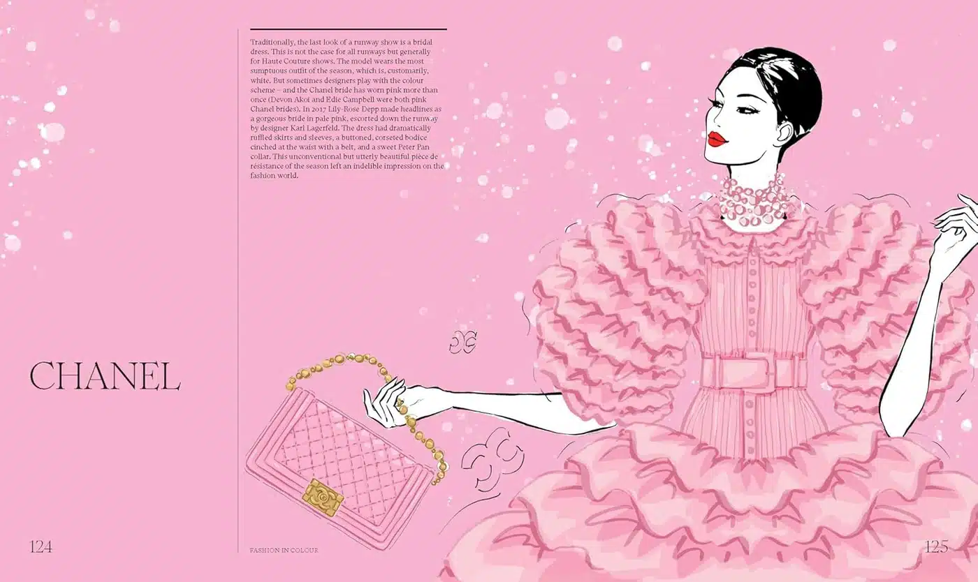 Boken är uppdelad i kapitel efter färg, som blå, grön, gul, orange, rosa, röd, lila, brun och vit. Varje kapitel lyfter fram ikoniska utseenden, modehus som förknippas med färgen, som Hermès och orange eller Valentino och rött, samt intressanta modefakta och historia tillsammans med Megans fantastiska illustrationer.