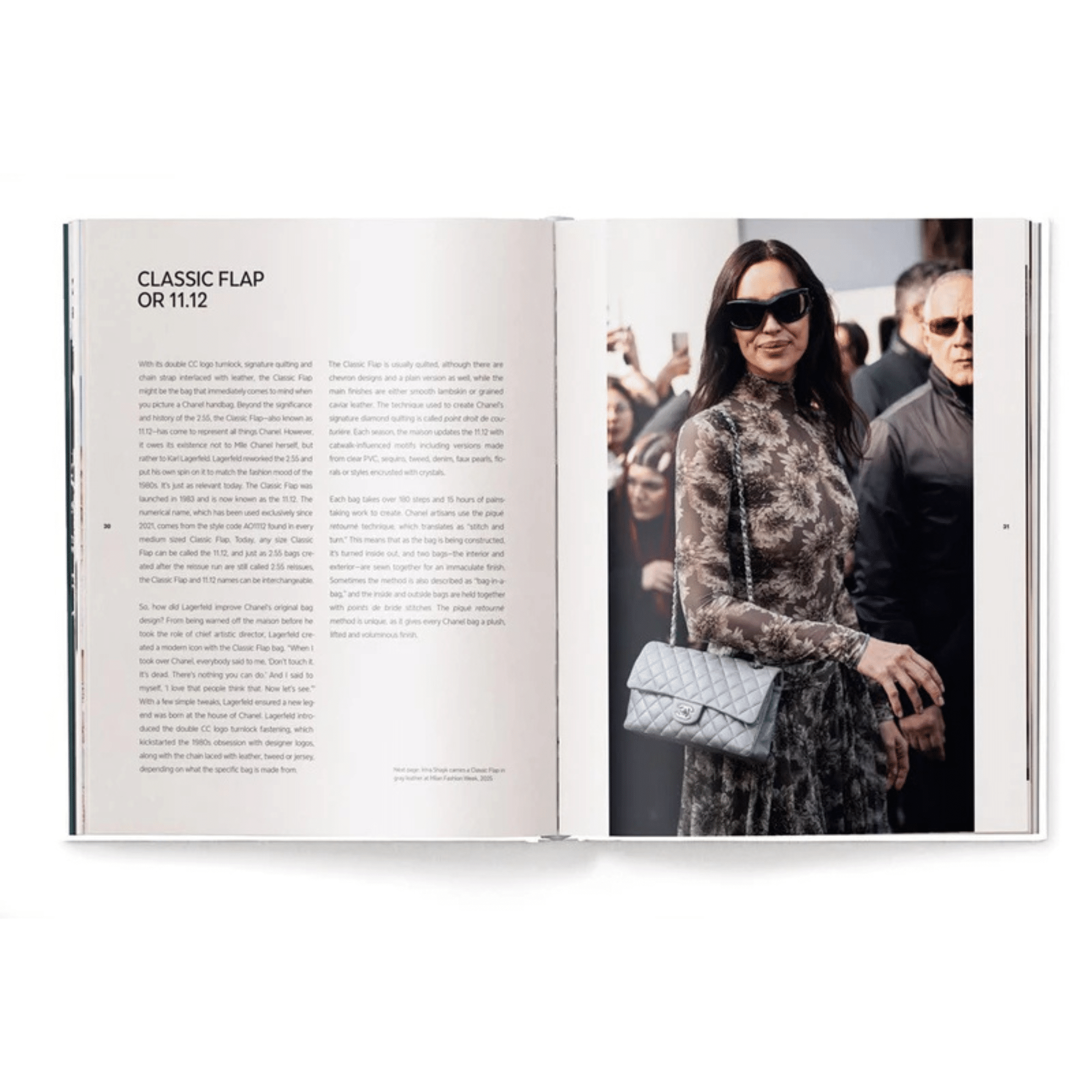 Redan från första sidan leds läsaren genom Coco Chanels revolutionerande vision, som förändrade modevärlden och kvinnors silhuett för alltid. Därefter utforskar boken den ikoniska 2.55-väskan, introducerad i februari 1955, och förklarar hur den fortfarande utgör en symbol för tidlös elegans och praktisk lyx. Vidare presenteras Boy Bag och Classic Flap (11.12), vilka både speglar Chanels arv och påverkar modern streetstyle.