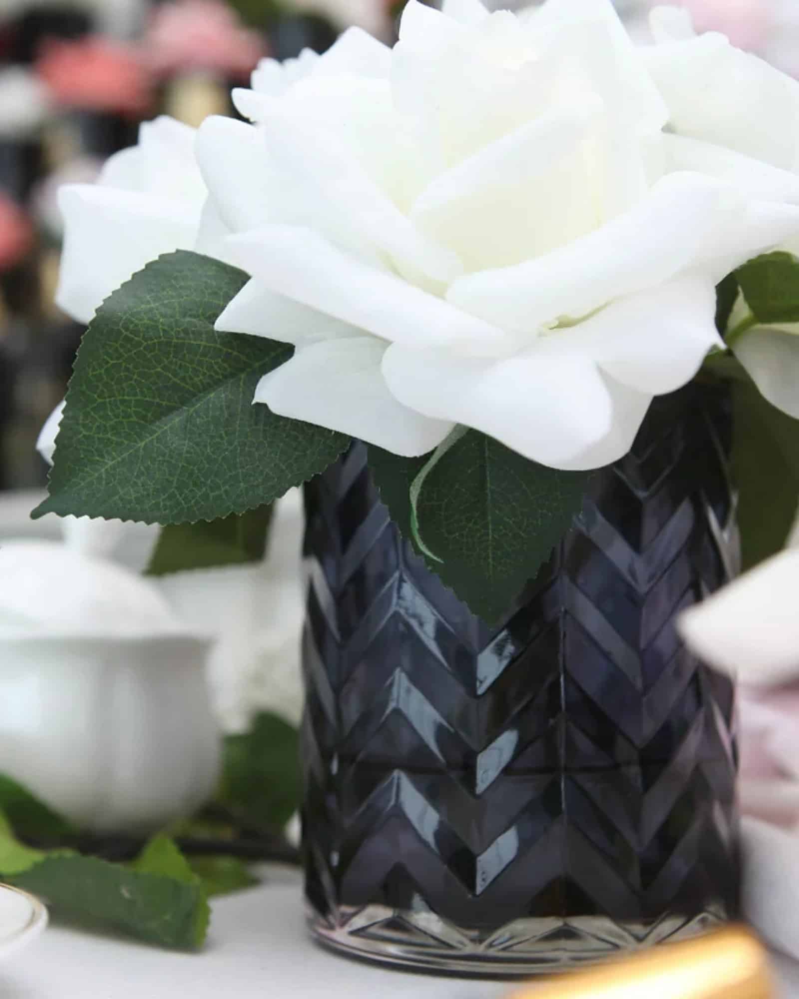 Låt ditt hem omfamnas av subtil elegans, väldoft och fransk charm med Côte Noire Doftrosor i blå herringbonevas. Denna sofistikerade dekoration kombinerar naturtrogna vita rosor med två exklusiva parfymer – och fungerar både som stilren inredningsdetalj och som diskret doftspridare.