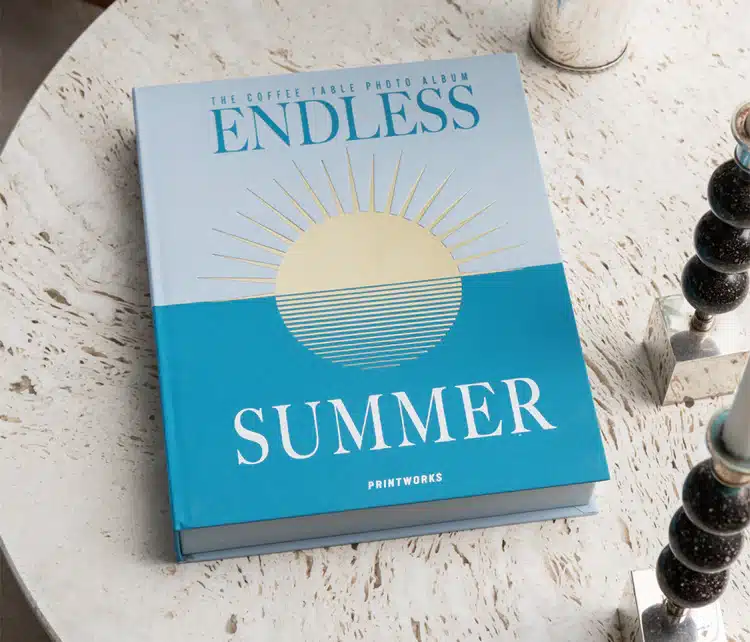 Upptäck vårt Endless Summer Photo Album med ett elegant turkos tygfodral. Inuti hittar du 30 sidor av högkvalitativt vitt fotopapper.