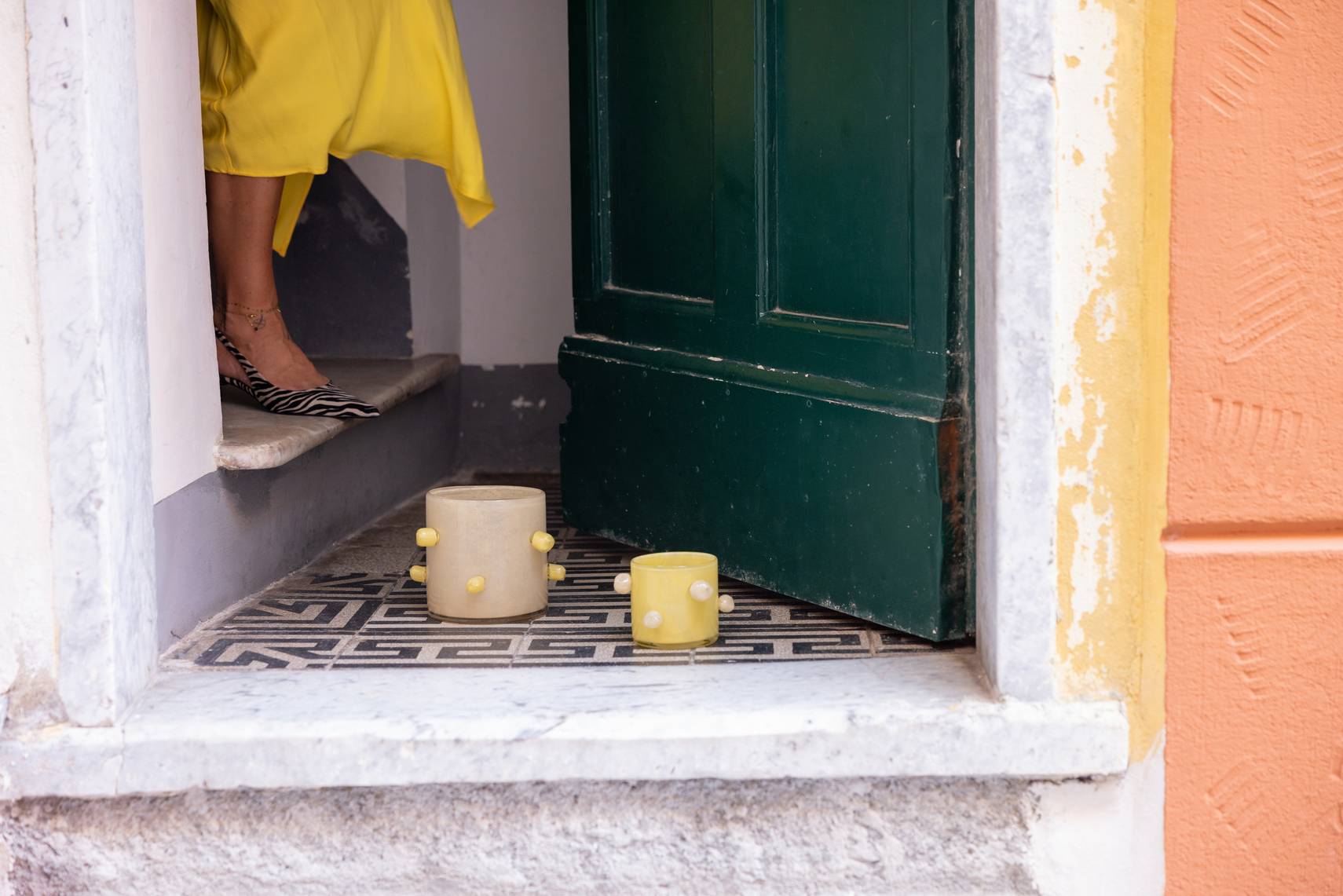 Arlo ljushållare är en lekfull variant av vår älskade Calore. Likt sina kusiner är Arlo multifunktionell – använd den som vas, ljushållare eller skål. Den passar in överallt och gör sig utmärkt i kombination med både Lori och Lara ljusstakar, där färgerna harmoniserar. Den beige färgen mixad med citrongult skapar en oslagbar kombination. Handgjord, färg- och strukturskillnader kan uppstå. Design Byon Studio. Levereras i Byon box.
