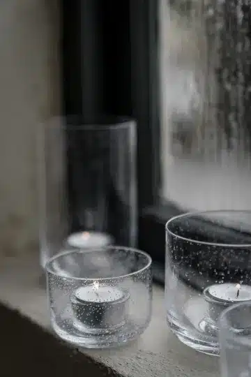 Ernst ljuslykta i glas skapar stämning och trivsel med tända ljus.