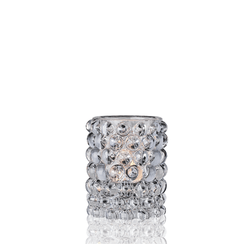 Hurricane Boule ger med sina optiska bubblor ett skimrande ljus och en lyxig tyngd. Alla ljuslyktor från Skogsberg & Smart bär spår av hantverk vilket gör varje ljuslykta helt unik. Boule är lika vacker som vas till blommor. Hurricane Boule Clear är 12 cm hög och är 10 cm i diameter. Vikt ca 1000-1300 gr. Kom ihåg att varje lljusykta är unik, så avvikelser på +/- 3% är en del hantverket och charmen i vår design. Bubblorna tillkommer när man blåser glasmassan i en gjutjärnsform och formas sedan för hand. Ytan är fylld med optiska bubblor som gör att Hurricane Boule får ett skimrande ljus i stilmässigt släktskap med 1970 talets glasdesign. Tål ej maskindisk. Vi ett rekommenderar 35 mm i diameter litet värmeljus i paraffin eller stearin.