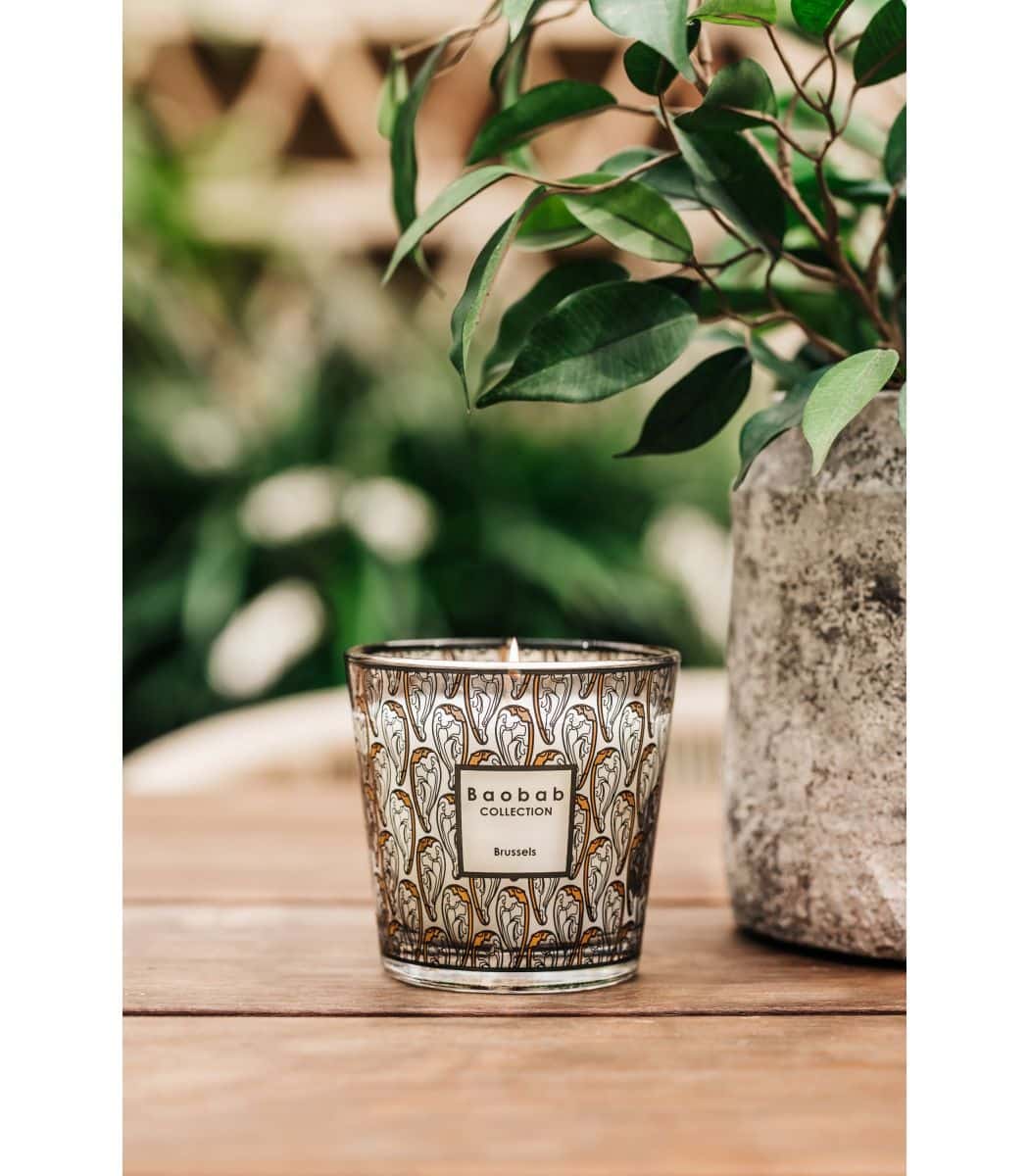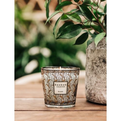 Brysseldoftljuset med sitt svart och guldfärgade silkscreen -tryck hyllar Victor Hortas arkitektur. Cypres – Sandalwood – Honey