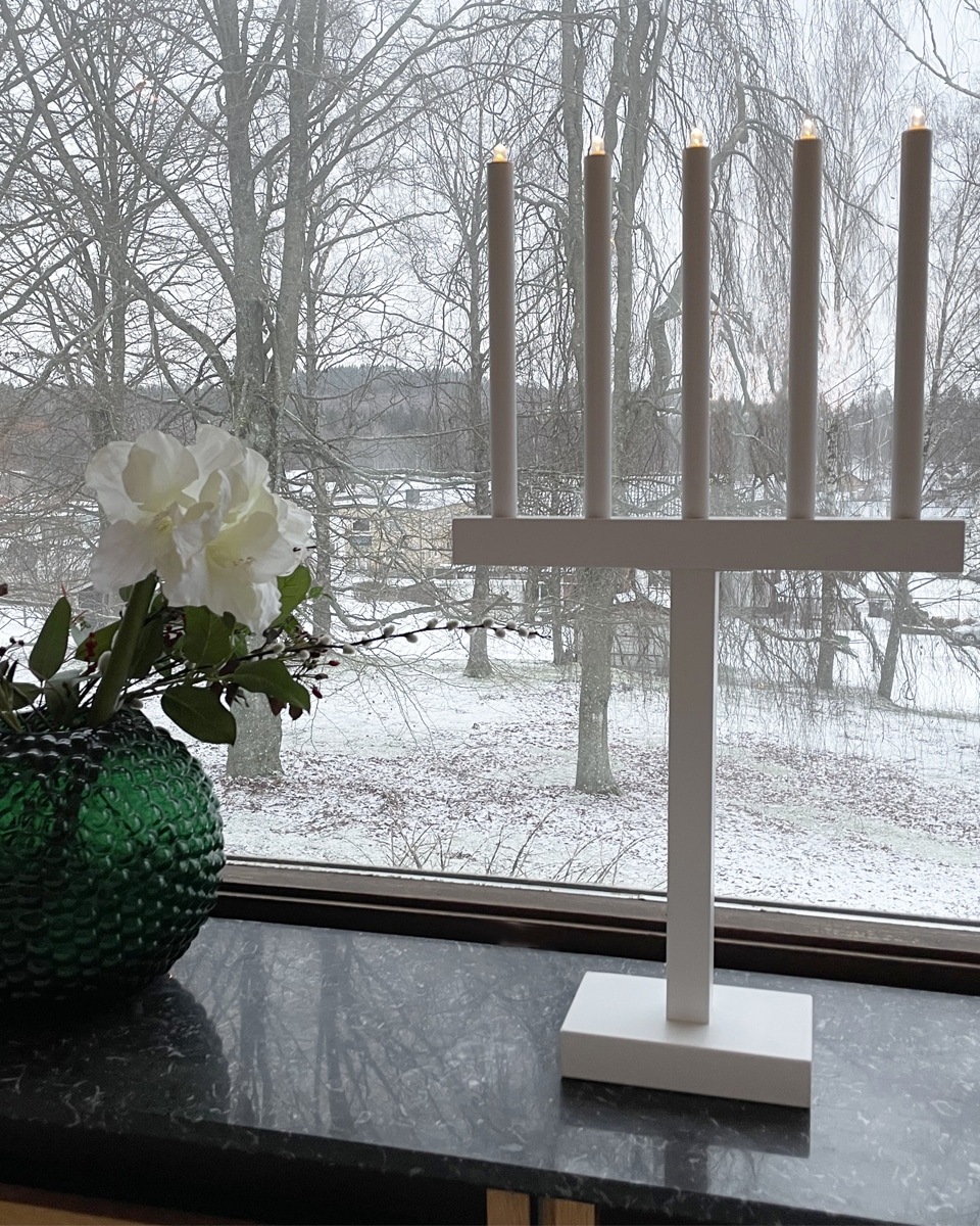 Få in julstämningen med Glimmer jul ljusstake från By Rydéns, tillgänglig i klassiska färger som vitt eller mörkgrönt. Denna eleganta ljusstake i metall är imponerande 74,5 cm hög och har en längd på 40,5 cm, vilket ger en imponerande syn i ditt hem under julen. Med fem inkluderade E10 LED-ljuskällor är den både energieffektiv och ger en varm, mysig belysning som skapar den perfekta atmosfären för julens festligheter. Glimmer ljusstake är en tidlös och stilren dekoration som blir en vacker del av din inredning.
