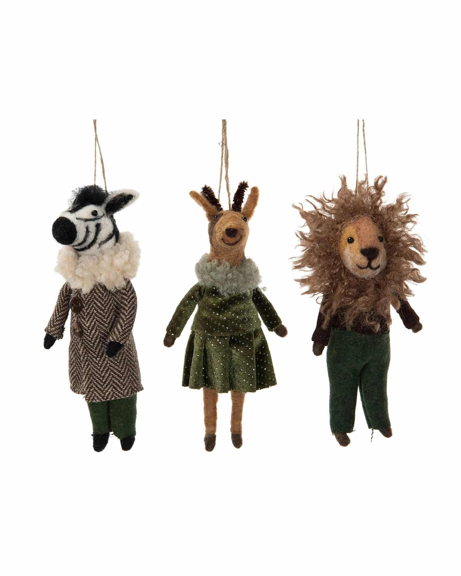 Lägg till humor och personlighet i din julgran eller blomsterdekoration med dessa charmiga Hänge Finklädda djur. Här möter du ett stiligt lejon, en zebra i kostym och en antilop med elegans – alla tillverkade i mjuk ull med handgjorda detaljer som gör varje figur unik.