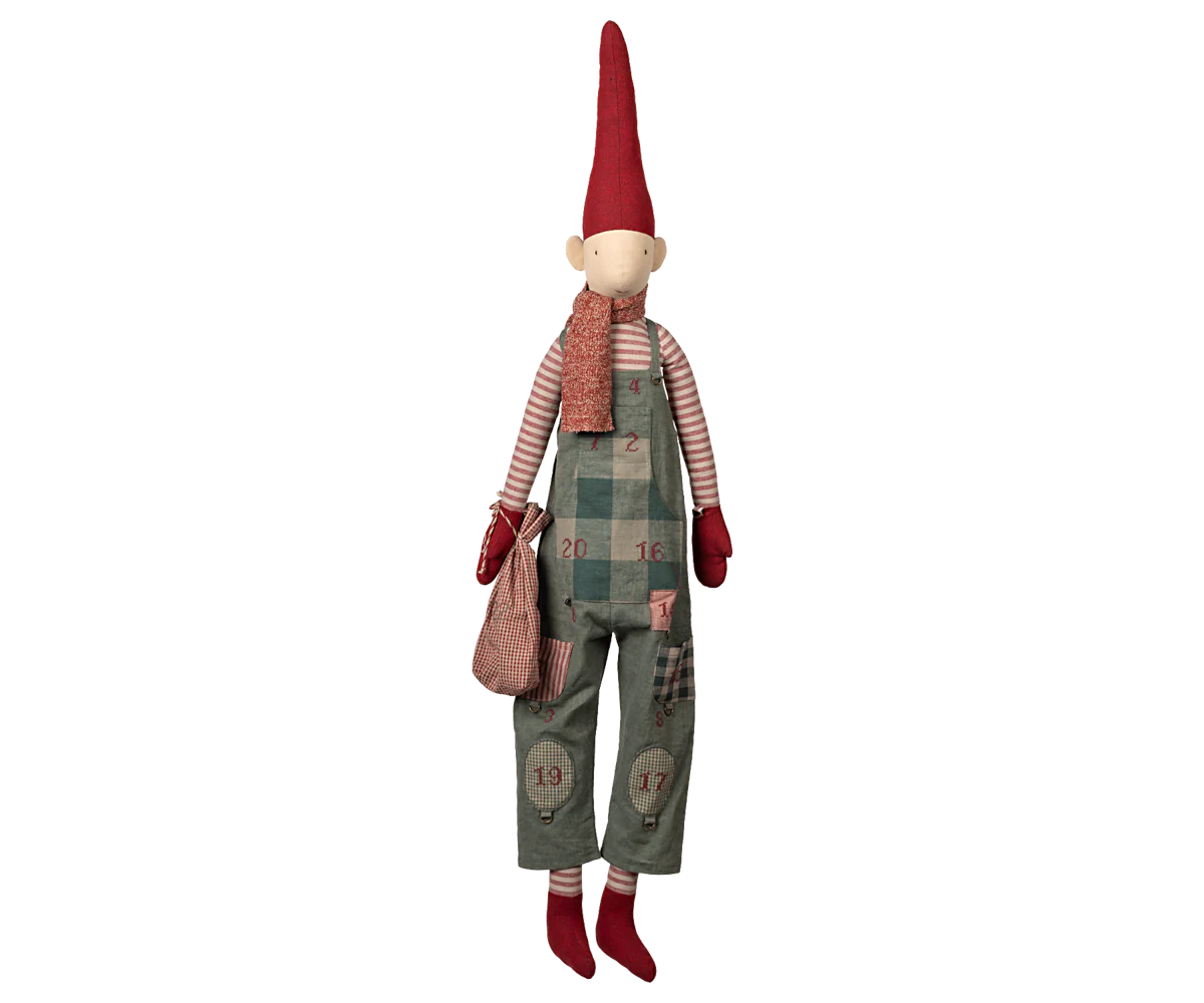 December är full av familjetraditioner och denna kalendernisse kan bli din nästa. Kalendertjejen har 24 ringar/fickor för att fästa små godsaker – en för varje dag innan jul. Pixyn har en rem i nacken, så den är lätt att hänga överallt.