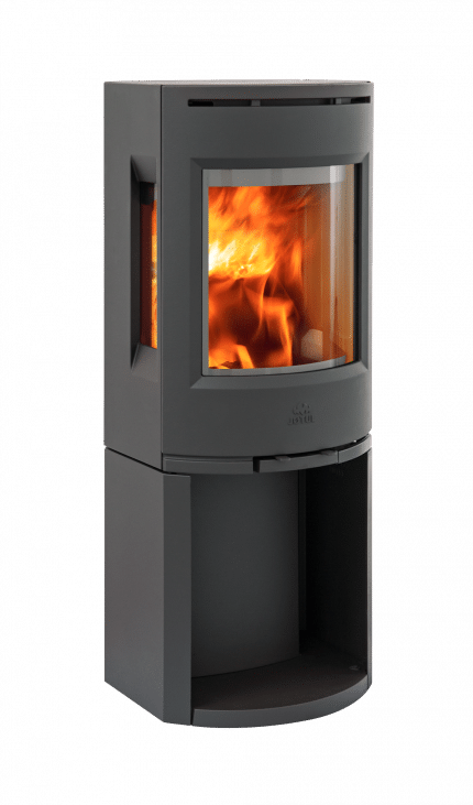 Jøtul F 130-serien är en modern, hög och stilren braskamin. För hus med lågt energibehov är den här braskaminen ett idealiskt alternativ. Den är kompakt och utvecklad för att fungera optimalt på låg effekt. Du kommer att uppskatta både de fina värmeegenskaperna och att du ser så mycket av elden genom det rena glaset. F 130-serien är renbrännande med ett modernt förbränningssystem som effektivt renar röken från partiklar och gör den mer effektiv, vilket minskar vedförbrukningen med upp till 40 procent. Integrerad konvektion gör att den kan installeras nära brännbart material. Ytan i svart matt lack ger F 130-serien ett stilrent formuttryck. Välj mellan sockel eller pelare och med eller utan sidoglas. Bakom den här kaminserien står den prisbelönta designbyrån Hareide Design. Jøtul F 135 är en kamin med sidoglas och sockel. Den kan placeras 10 cm från brännbart material bakom. På grund av sidoglasen behöver det vara 18 cm avstånd vid hörnplacering.