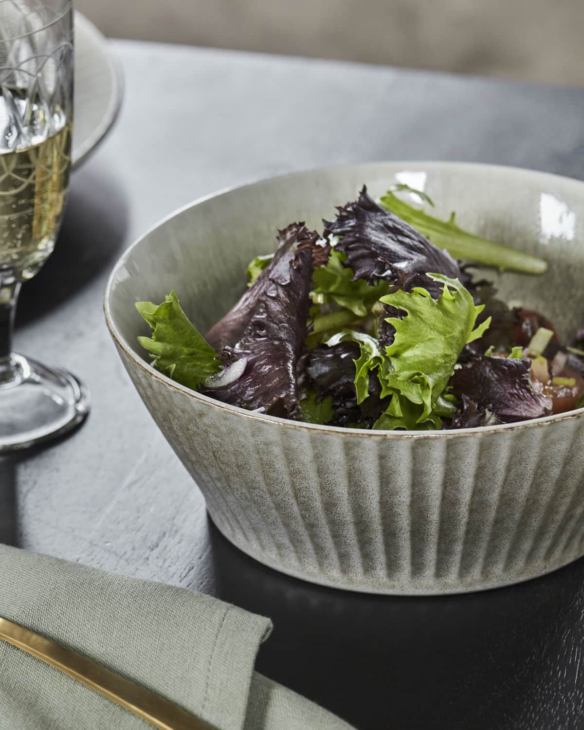 Presentera sallader och andra rätter med stil med den här skålen från House Doctor. Den räfflade designen har en matt utsida och en glänsande insida för att ge dukningen en fin, och ändå elegant touch. Använd skålen till sallader, snacks och allt däremellan. Storleken gör den idealisk för så många ändamål och tillfällen – från en enkel middag till en spontan kompisträff som kräver uppmärksamhet på detaljerna. Finish/Färg kan variera. Material: Stengods. Godkänd för diskmaskin, Godkänd för mikrovågsugn, Not approved for oven