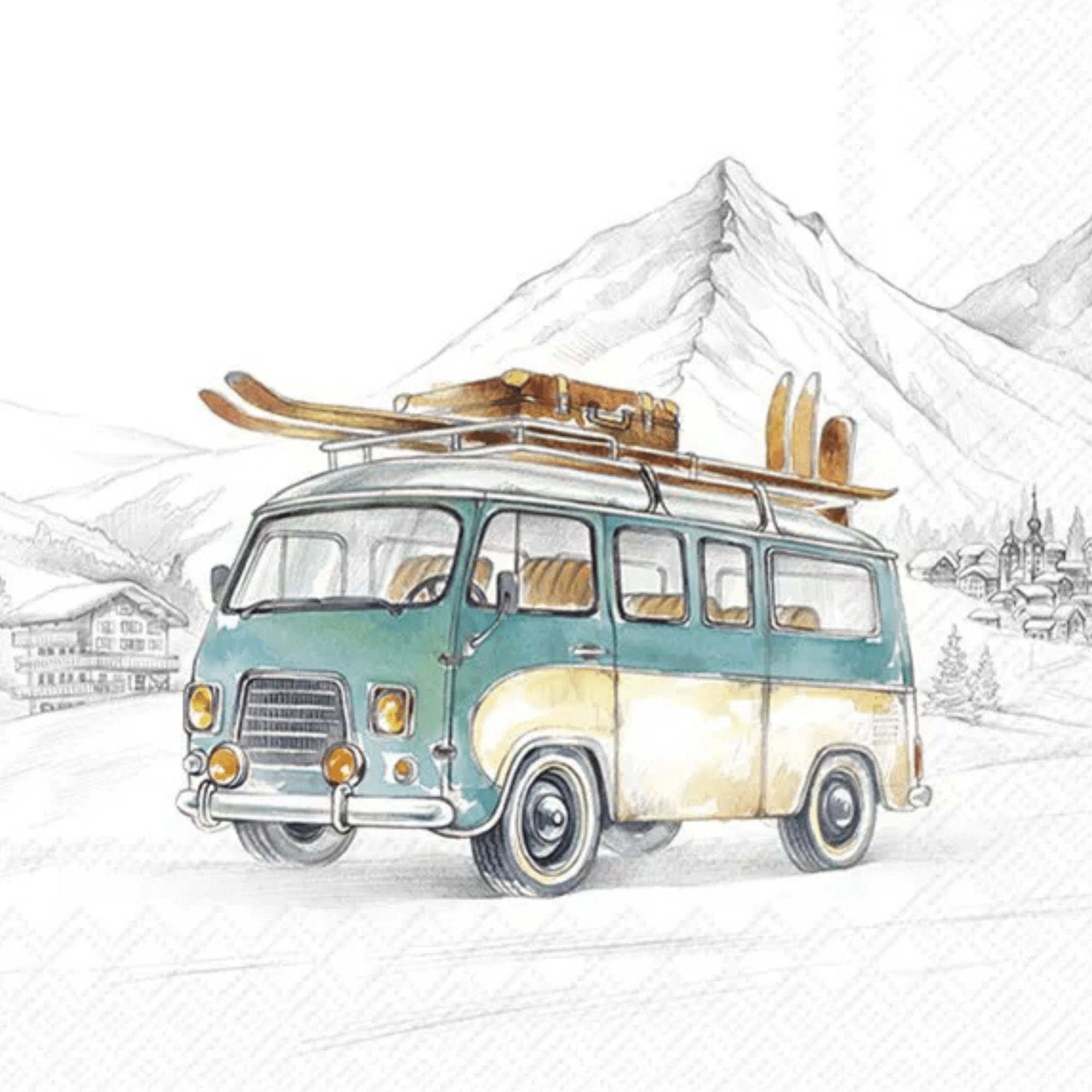 Ge din dukning en aktiv och lekfull känsla med servetten Ski Adventures Lunch. Den charmiga pappersservetten fångar vinterns fartfyllda stunder och gnistrande landskap. Med sitt livfulla motiv, inspirerat av skidåkning, fjällsemester och snötäckta vyer, blir servetten ett perfekt inslag på bordet under hela vinterhalvåret.