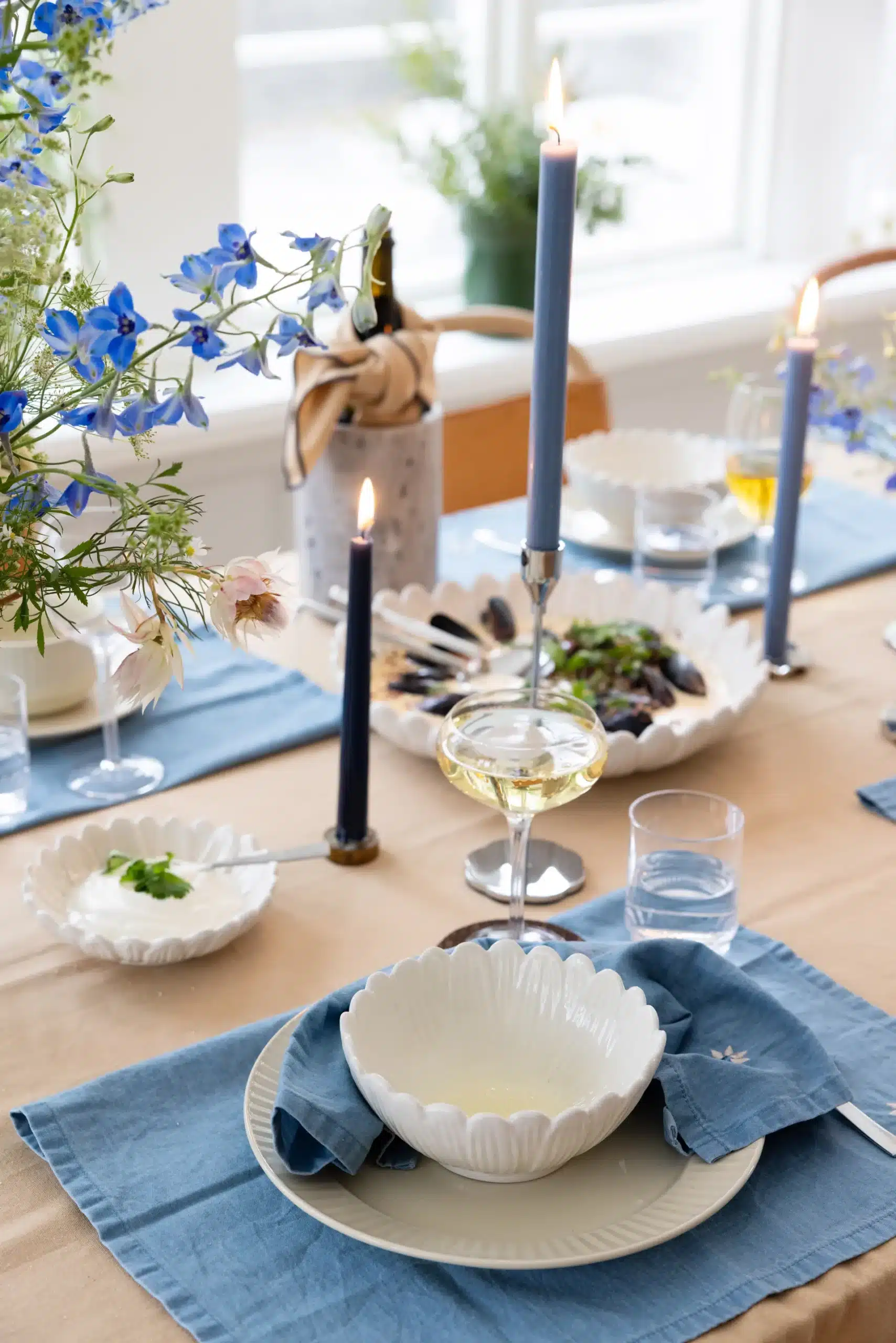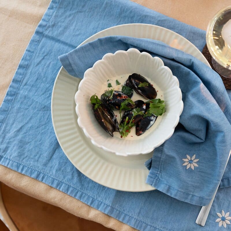 Sköna kökshanddukar i en mjuk certifierad bomullsdenim prydda med en broderad beige blomma som matchar Eden-serien. Den svala denimfärgen ger både karaktär och en klassisk känsla i köket. Mått: 50×70 cm. Levereras i två-pack med pappgördel. Certifierad bomullsdenim.