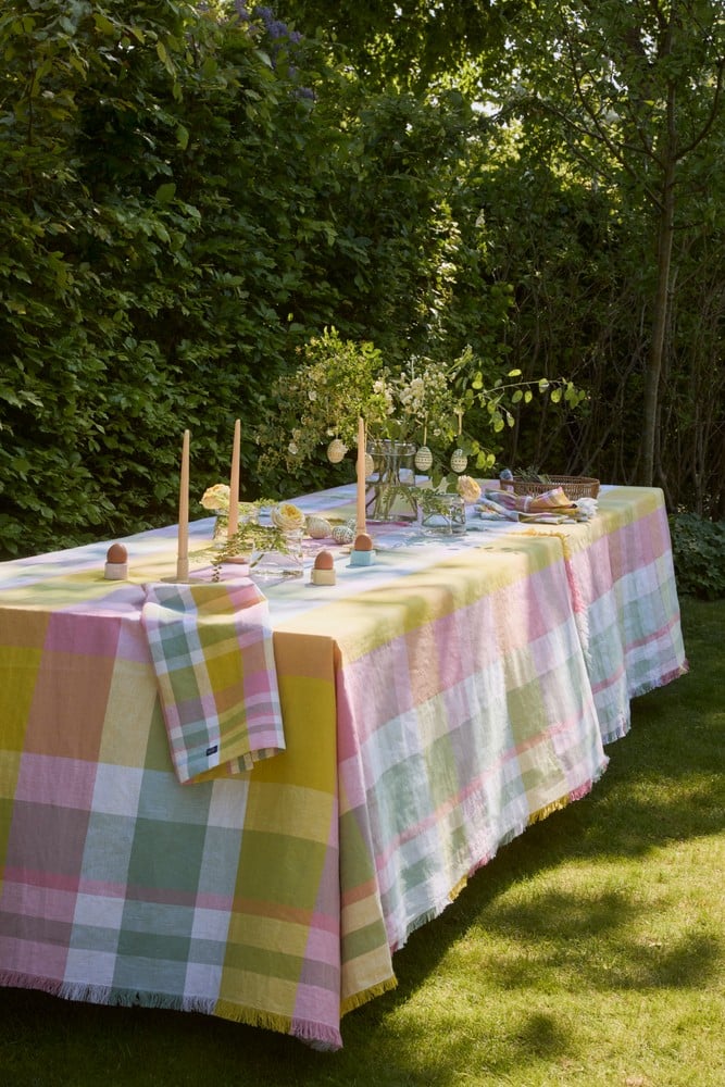 Våren har äntligen kommit! Fira säsongen med vår påskservett av linne-/bomullsblandning. Det glada rutiga mönstret fungerar som det perfekta tillbehöret till ditt favorithögtidsbord som är fyllt med glaserad skinka, potatisgratäng och rostad sparris. Vår extra mjuka och hållbara linne-/bomullsblandning tvättas enkelt och håller i många och vi har producerat den i en certifierad Green Factory för ett miljövänligt val som du mår bra av. Kombinera den med vår påskduk i linne/bomull för en perfekt sammansatt look.