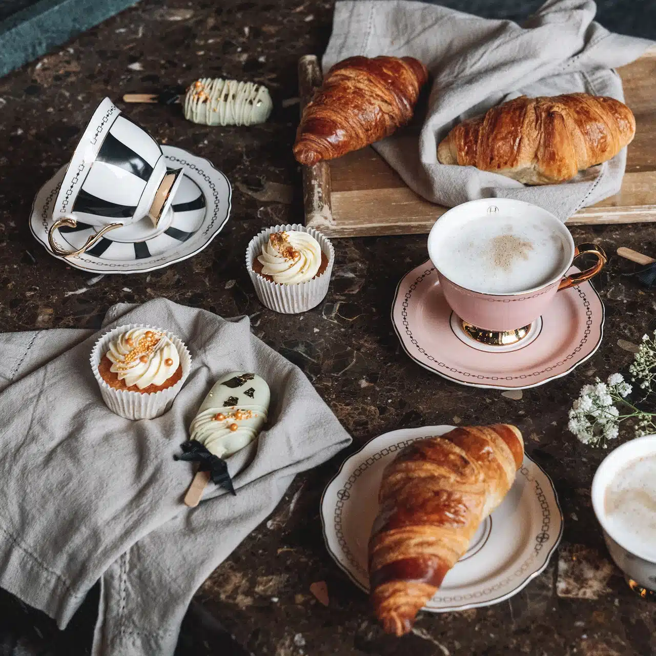Handmålat porslin med gulddetaljer