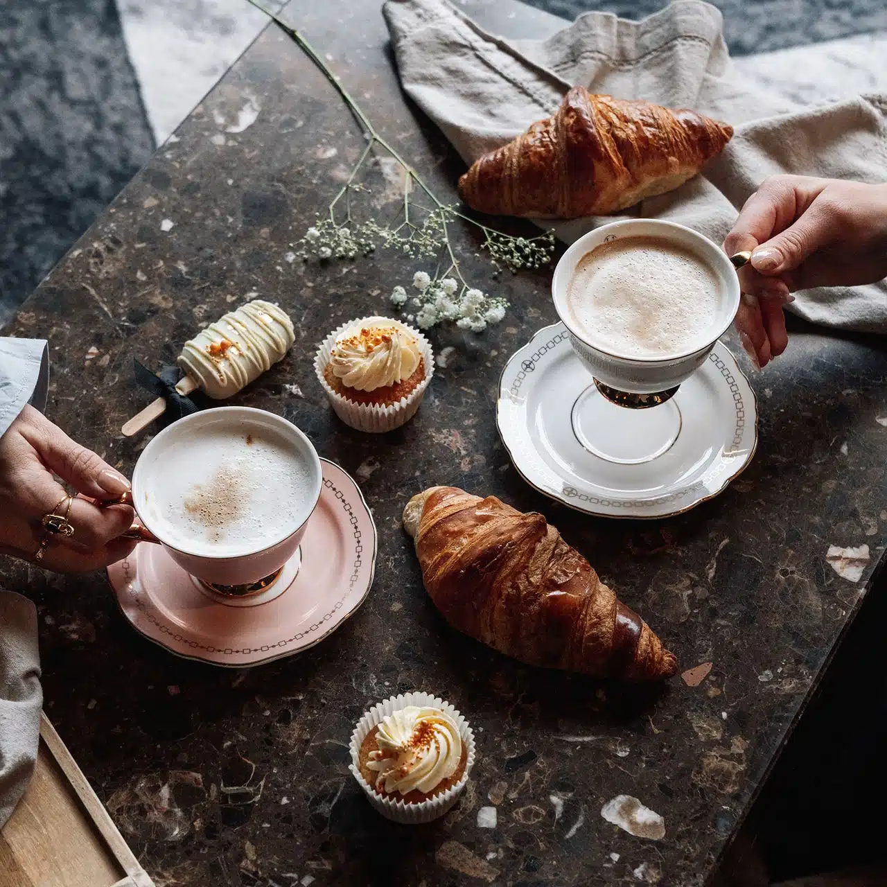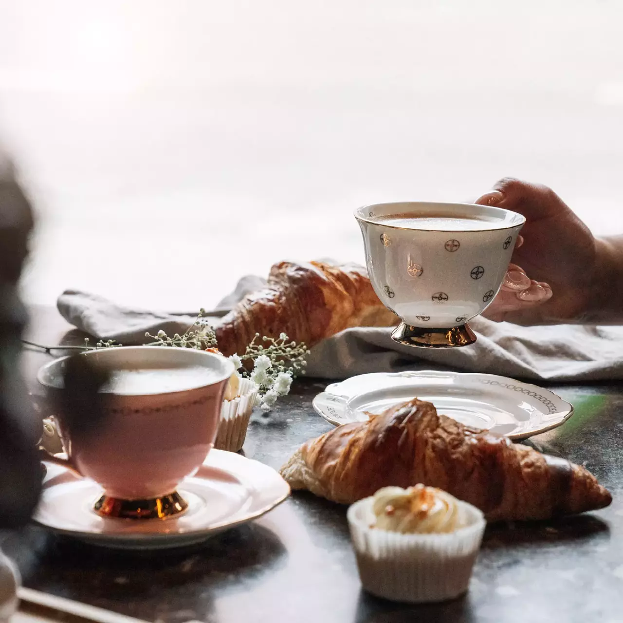 Handmålat porslin med gulddetaljer