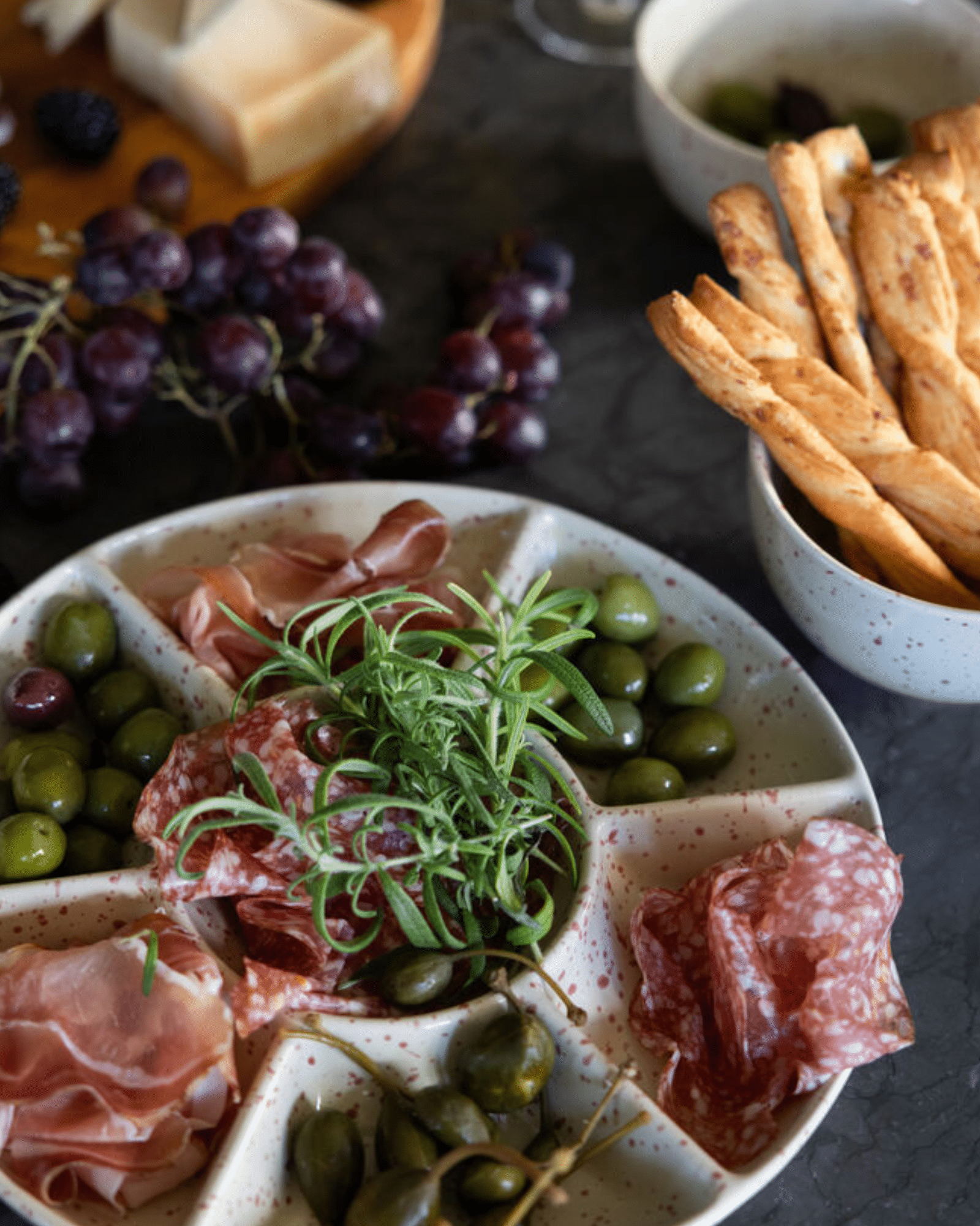 Istället för att använda flera små skålar kan du servera allt på ett och samma fat. Det gör inte bara dukningen mer stilren, utan även bordet mer organiserat. Dessutom sparar du plats och får mindre disk, något som uppskattas både till vardags och vid festliga tillfällen.