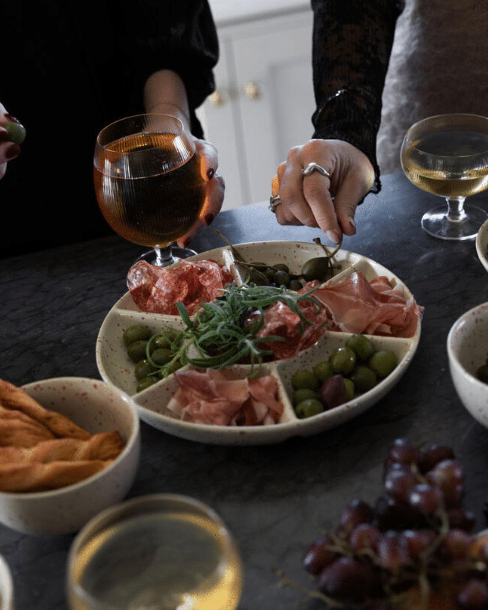 Upptäck Ditte serveringsfat, ett elegant och mångsidigt fat som förenar funktion och skandinavisk formgivning. Med sin vackra färgkombination i beige med vinröda stänk blir det snabbt en favorit på det dukade bordet. Oavsett om du bjuder på tapas, tacos, snacks eller annan plockmat passar fatet perfekt.