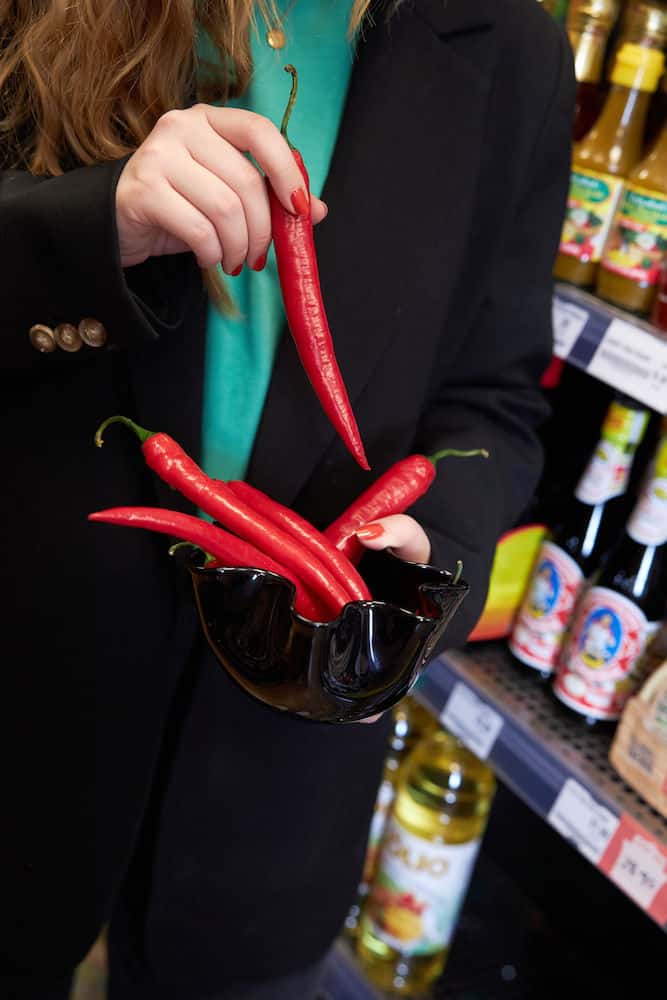 Skål Cara är en ny favorit. Dess böljande kanter och oregelbundna form fångar ögat. Den nedtonade kulören av svart gör den sobert kaxig. Skål Cara är handgjord och handblåst vilket gör varje produkt unik. Perfekt för snacks, oliver eller med ett värmeljus.