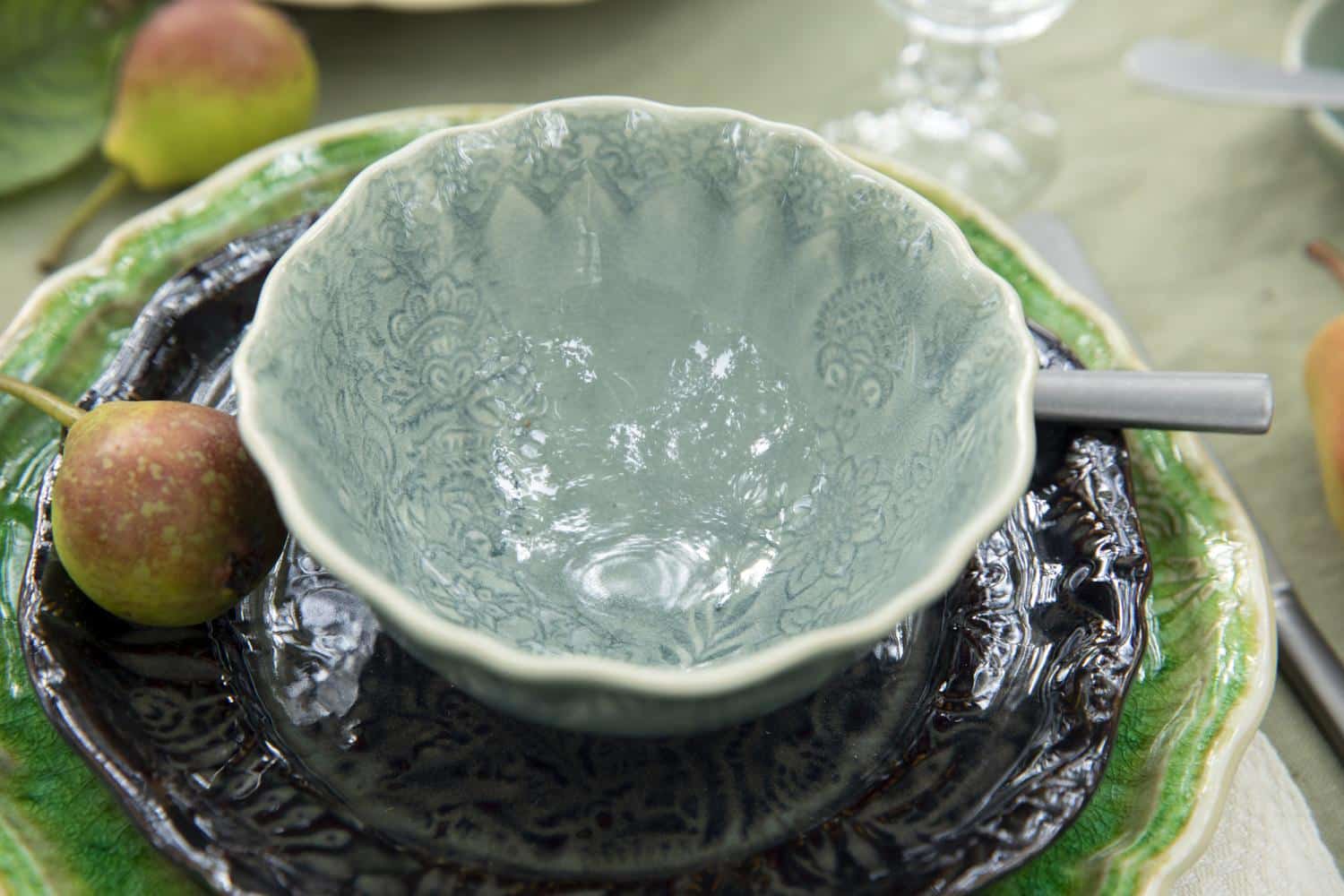 Soppskålen i serien Arabesque som också är utmärkt som frukostskål till morgonflingorna eller som salladsskål till lunch. Skålen är alldeles lagom djup skål och vilar stabilt på det dukade bordet. Den mjuka rundade formen trivs på alla kalas och dukas med fördel fram på både vardags- och festbordet. Soppskålen är användbar och tål att användas i ugn såväl som mikrovågsugn och kan precis som all Sthåls keramik diskas i maskin. Glasyren kallas antikgrön och är en så kallad effektglasyr med små, små fina krackeleringar som ger liv åt ytan. Glasyren är rinnig i sin karaktär och ger vackra färgskiftningar som gör varje exemplar unik.