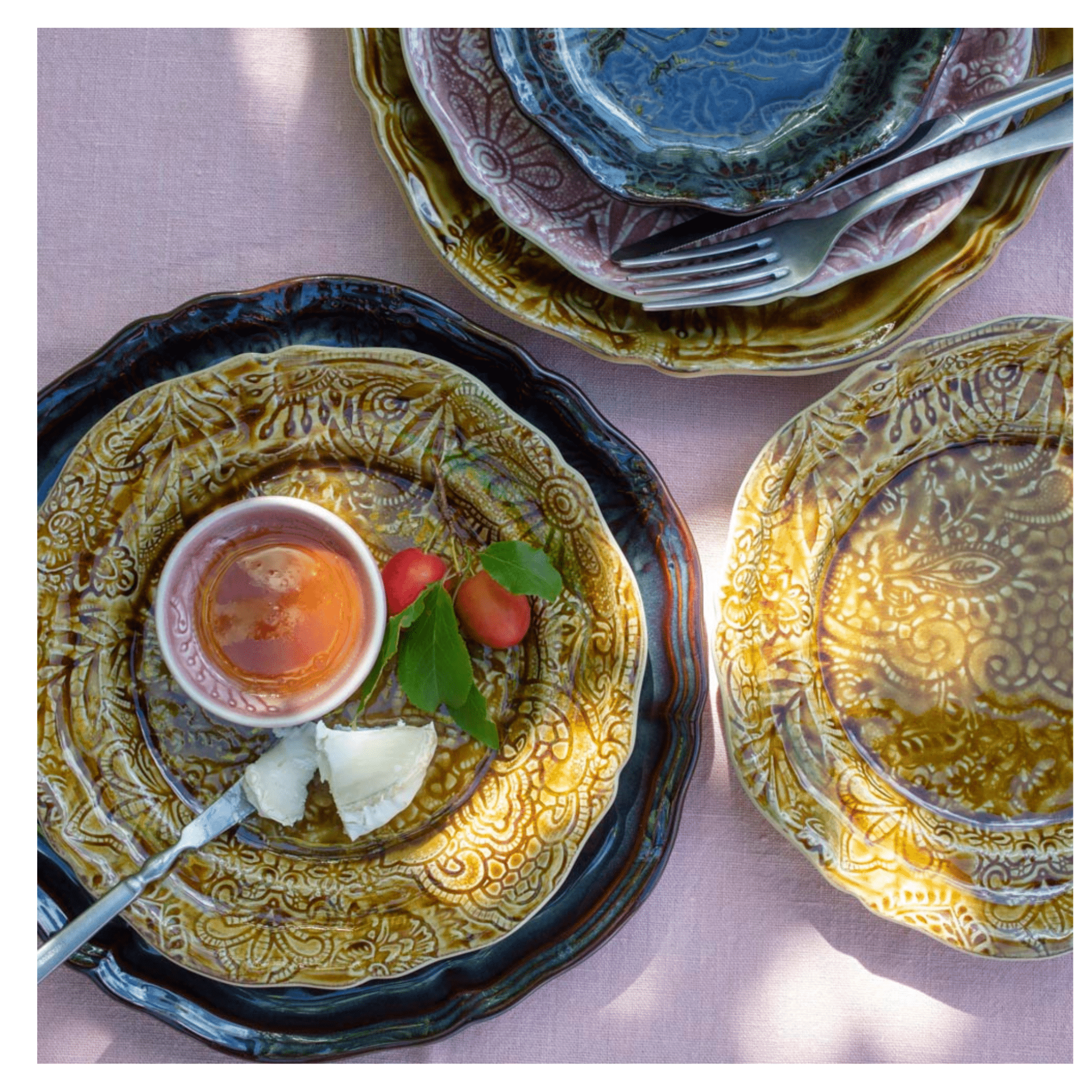 Sätter guldkant på tillvaron. Matcha mattallriken eller gör ett färgsprakande bord genom att välja olika spännande glasyrer. Assiettens dekorativa sirliga mönster tecknar sig så vackert i keramiken. Mönstret är typiskt för Sthåls kollektion Arabesque. Den lilla tallriken bara väntar på att det ska få sällskap av något delikat. Den fungerar för sig själv som en liten tallrik. Den blir också helt magnifik när assietten dukas på en mattallrik i samma serie. Tallrik på tallrik ger ett starkt intryck. Här ser vi Sthåls assiett i en varm kaffebrun ton. Glasyren flödar över assietten och ger ett livfullt intryck.