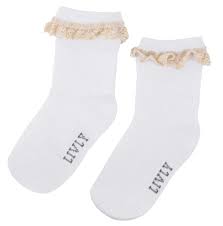 Livly’s mjuka och vackra Lace socks med guldig volang upptill är både mjuka och eleganta och blir en klassiker i den lilla kalasgarderoben!