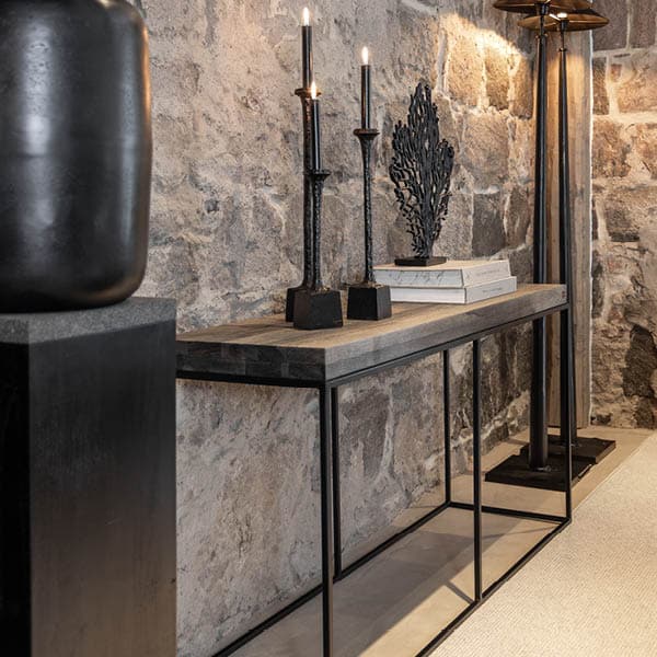 Med måtten 150 x 42 cm och en höjd på 76 cm erbjuder bordet gott om plats för lampor, dekorationer eller förvaring, samtidigt som det behåller ett luftigt och stilrent uttryck. Den gedigna konstruktionen och det naturliga utseendet gör bordet till ett hållbart och vackert val för moderna och klassiska miljöer.