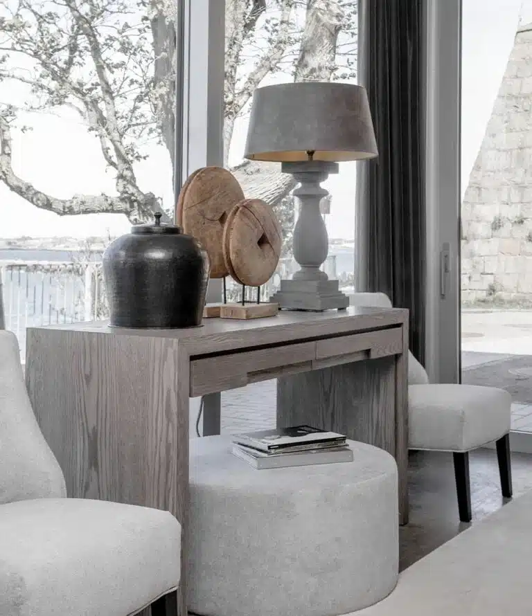 Uppgradera ditt hemmakontor eller arbetsrum med Hunter Skrivbord från Artwood, ett stilrent och minimalistiskt skrivbord som kombinerar praktisk funktion med tidlös design. Tillverkat i högkvalitativ ekfanér med en vacker antique grey finish, ger detta skrivbord både en varm och naturlig känsla samt ett sofistikerat uttryck som passar alla typer av inredningsstilar, från moderna hem till klassiska miljöer.
