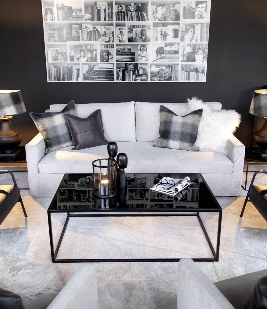 Snyggt soffbord från Artwood med rökfärgat glas och svart metallram.