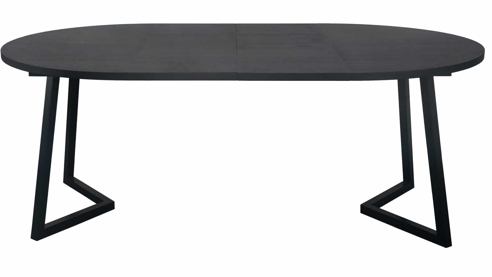 Stilrent matbord med lackad askfanérskiva och svart metallunderrede. Inkluderar 2 klaffar för flexibel storlek, perfekt för både vardag och fest.