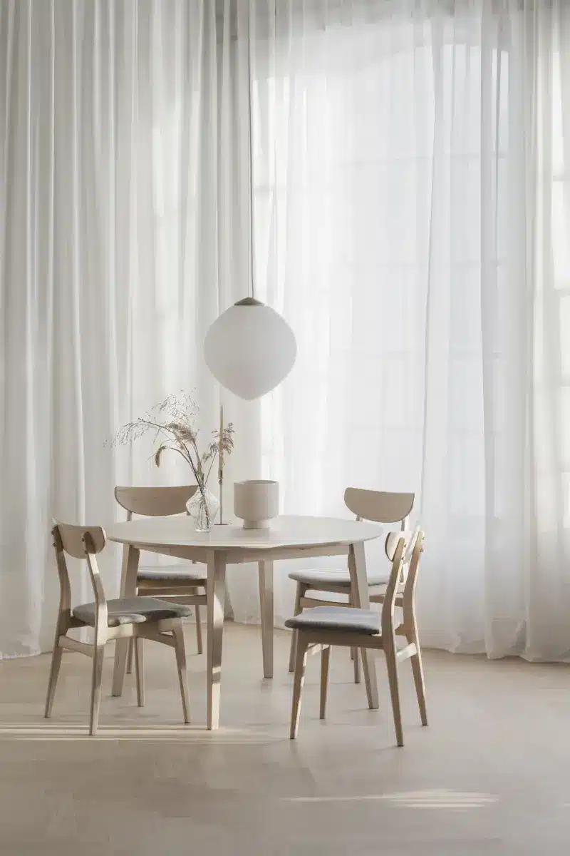 Praktiskt matbord i smidigt runt format med en diameter på 120 cm. Det går att förlänga till 165 cm tack vare en medföljande iläggsskiva, och det går även att köpa till ytterligare ett 45 cm ilägg. Bordets maxlängd blir då 210 cm. Bordet består av massiv fingerskarvad ek som behandlats med vitpigmenterad olja. Matbordet ingår i vår breda Filippa-serie som även har förvaring som passar fint till. Matbordet består av 100% FSC-certifierat trä och är ett bra och hållbart val.
