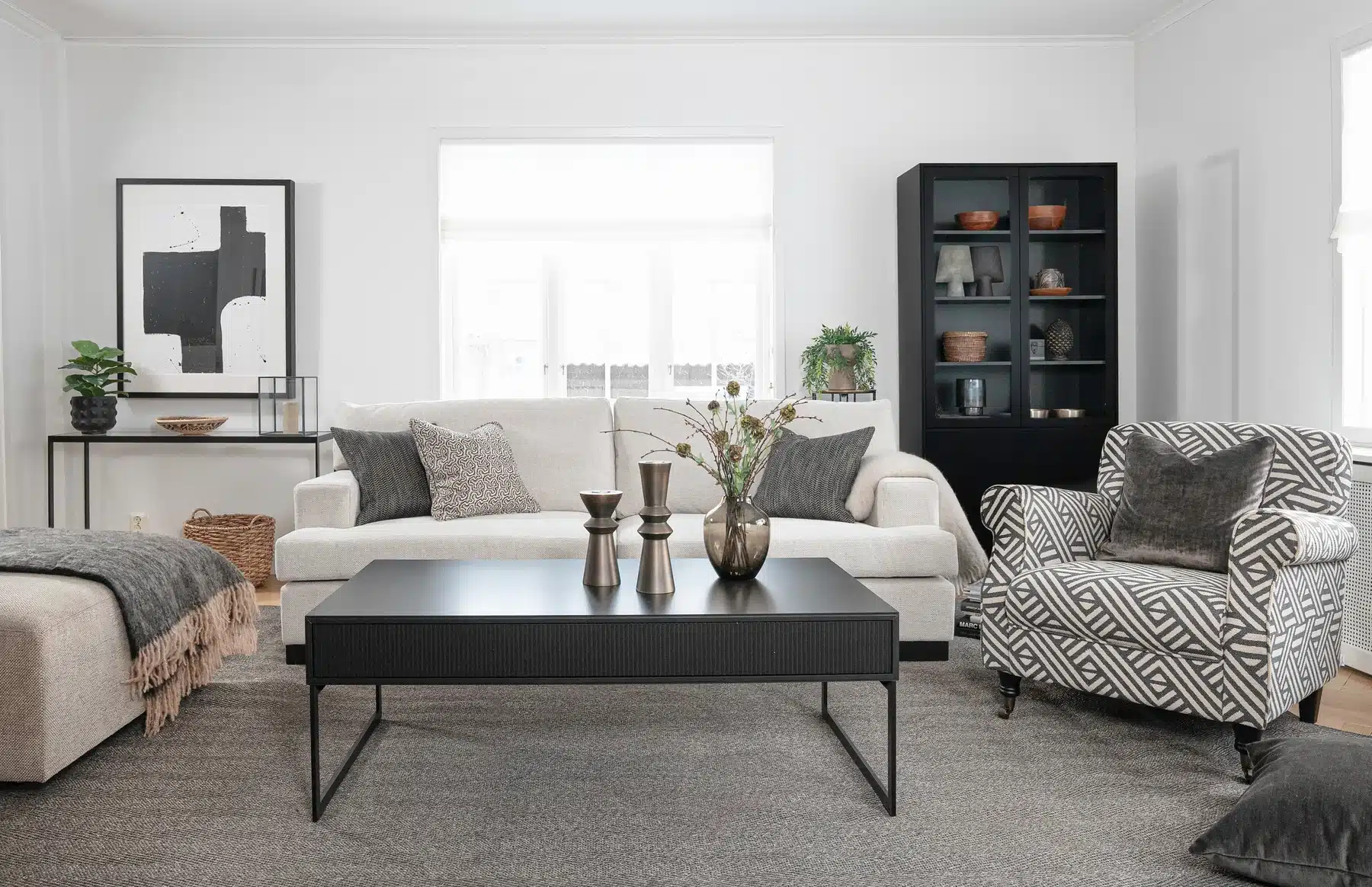 Sandhamn-seriens utmärkande drag är breda armstöd och genomgående kubiska former, som tillsammans med korta ben skapar en postmodern arkitektonisk stil. Serien finns även som soffa i flera storlekar, divansoffa samt fåtölj.