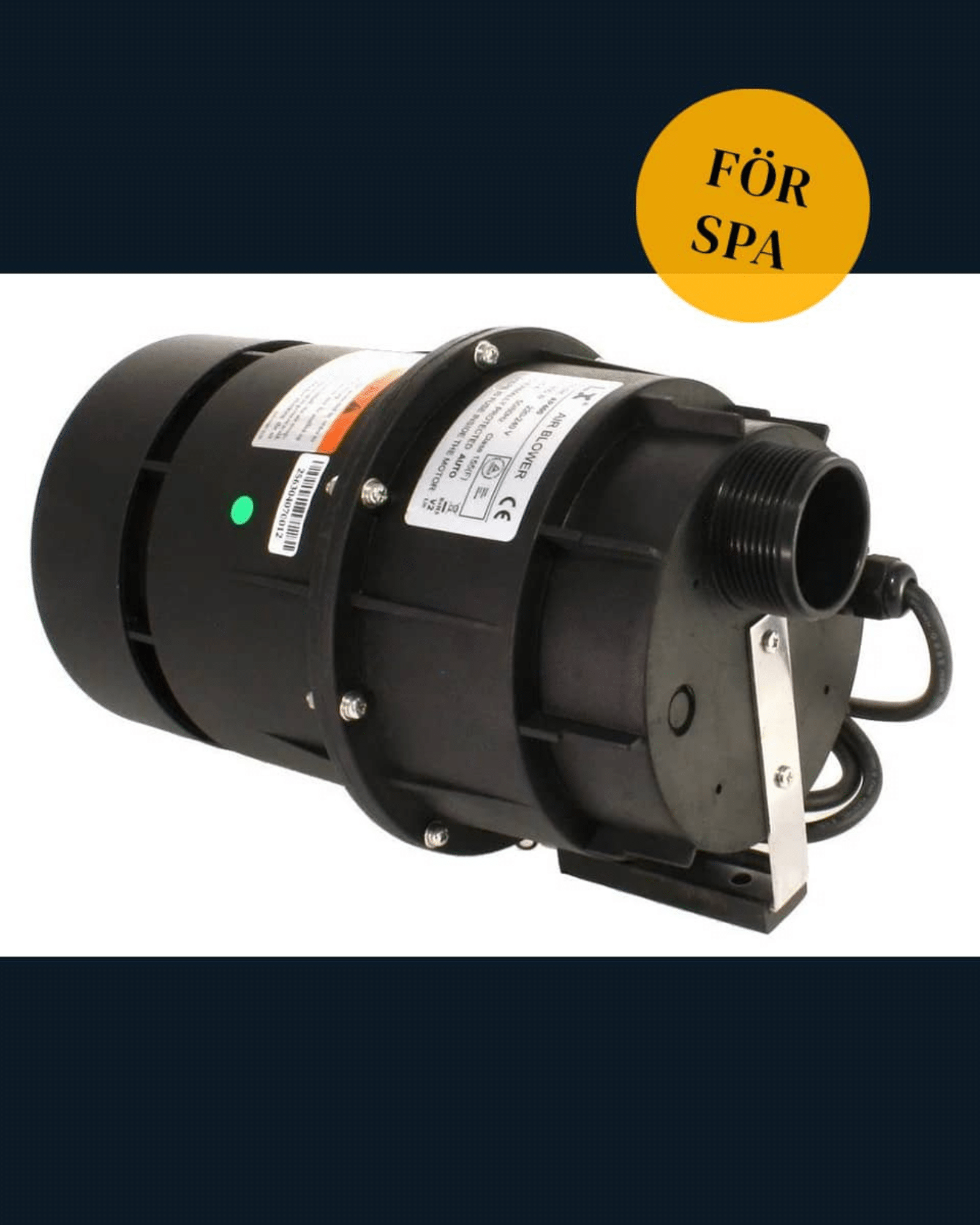 Luftpump konstruerad att användas för bubbelpooler och badtunnor. Den blåser ca. 1 700 liter luft per minut och kan användas för vattendjup 30-90 cm. Effekten är 700 W och den kan styras med t.ex. en tryckbrytare.