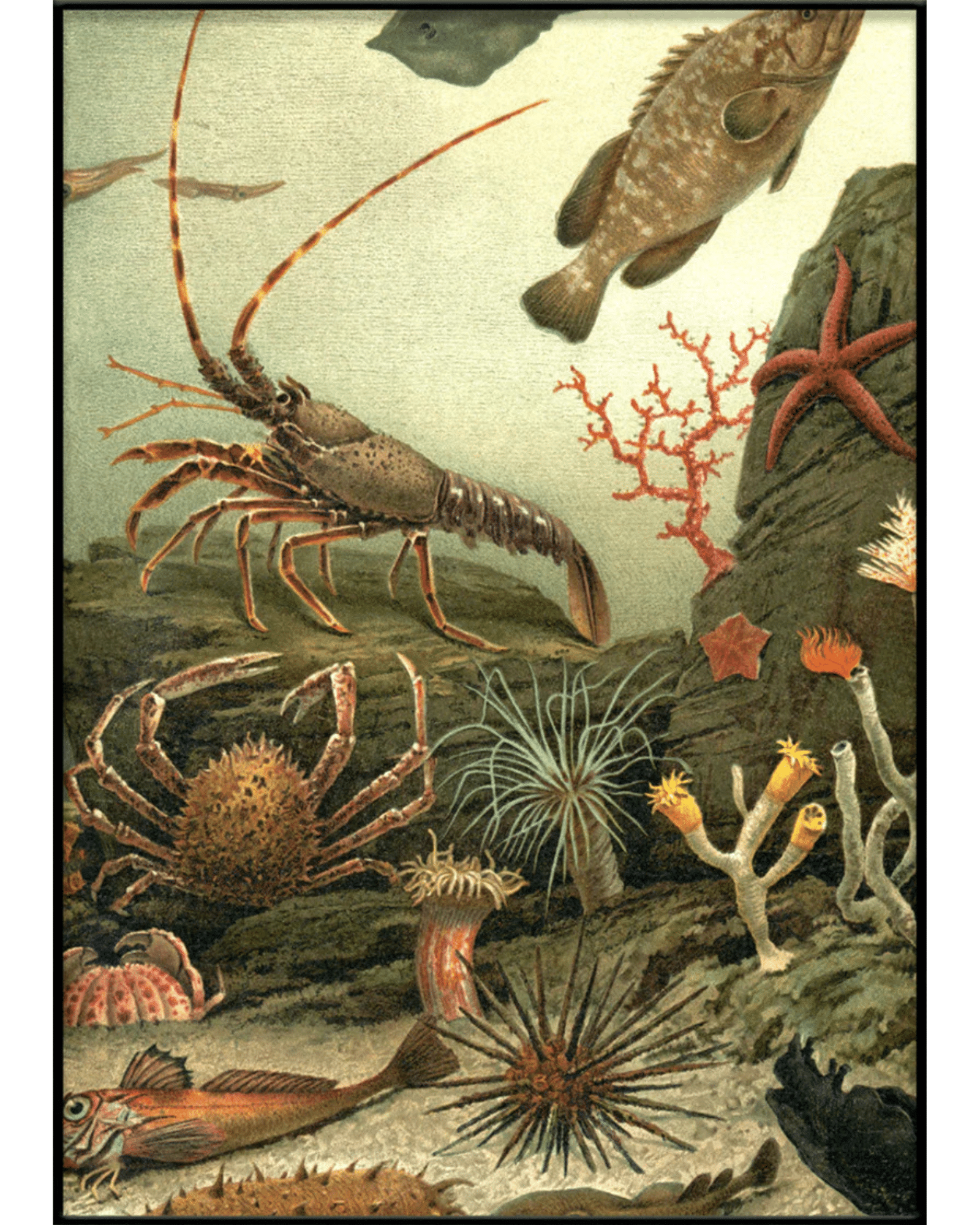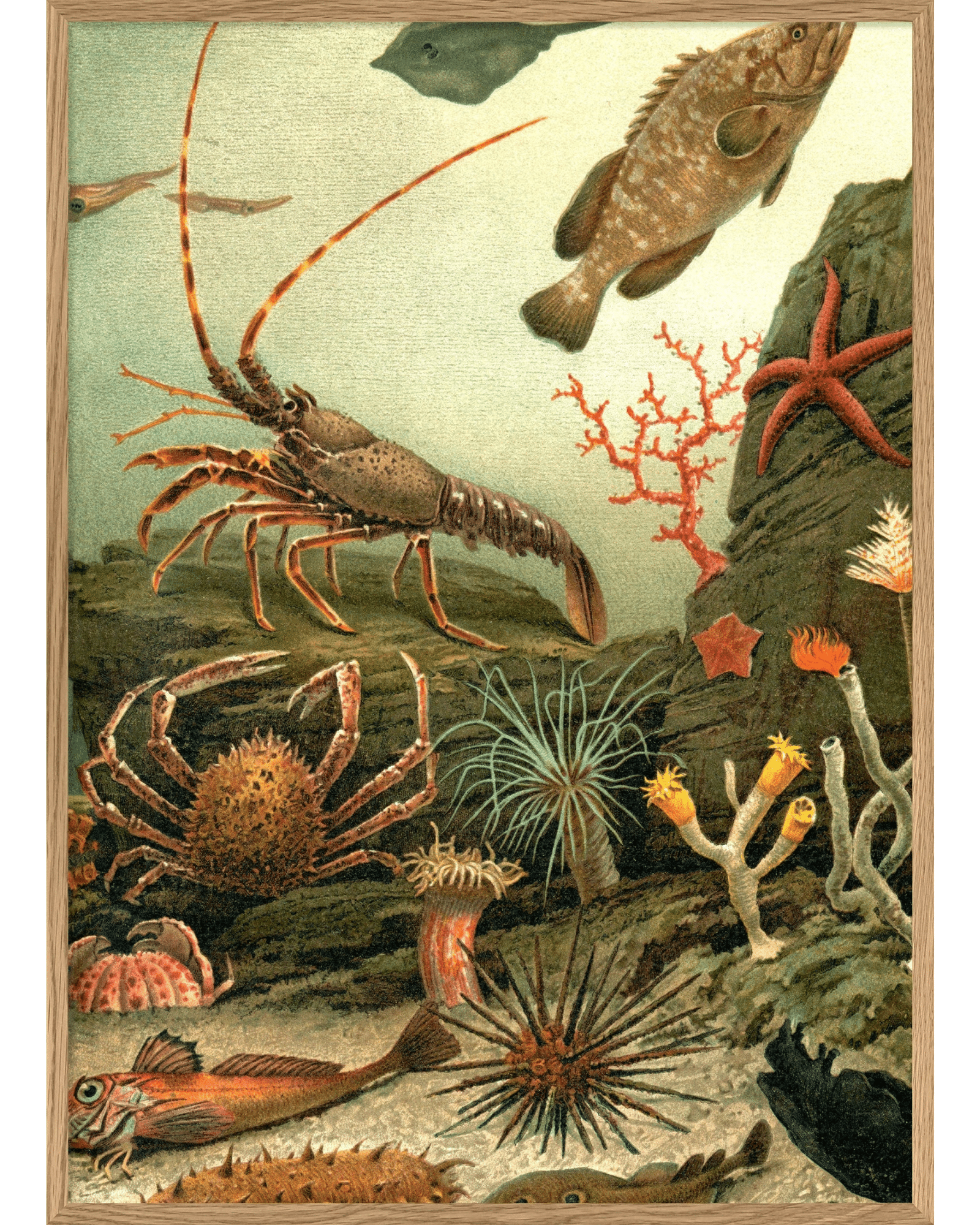 Aquarium Right Side från The Dybdahl Company är en fängslande del av en större helhet – en digitalt restaurerad 1700-talsillustration som avslöjar det rika och färgstarka liv som gömmer sig under havsytan. Här möts du av ett myllrande undervattenslandskap fullt av liv, färg och rörelse – en visuell resa som kombinerar vetenskaplig nyfikenhet med tidlös skönhet.