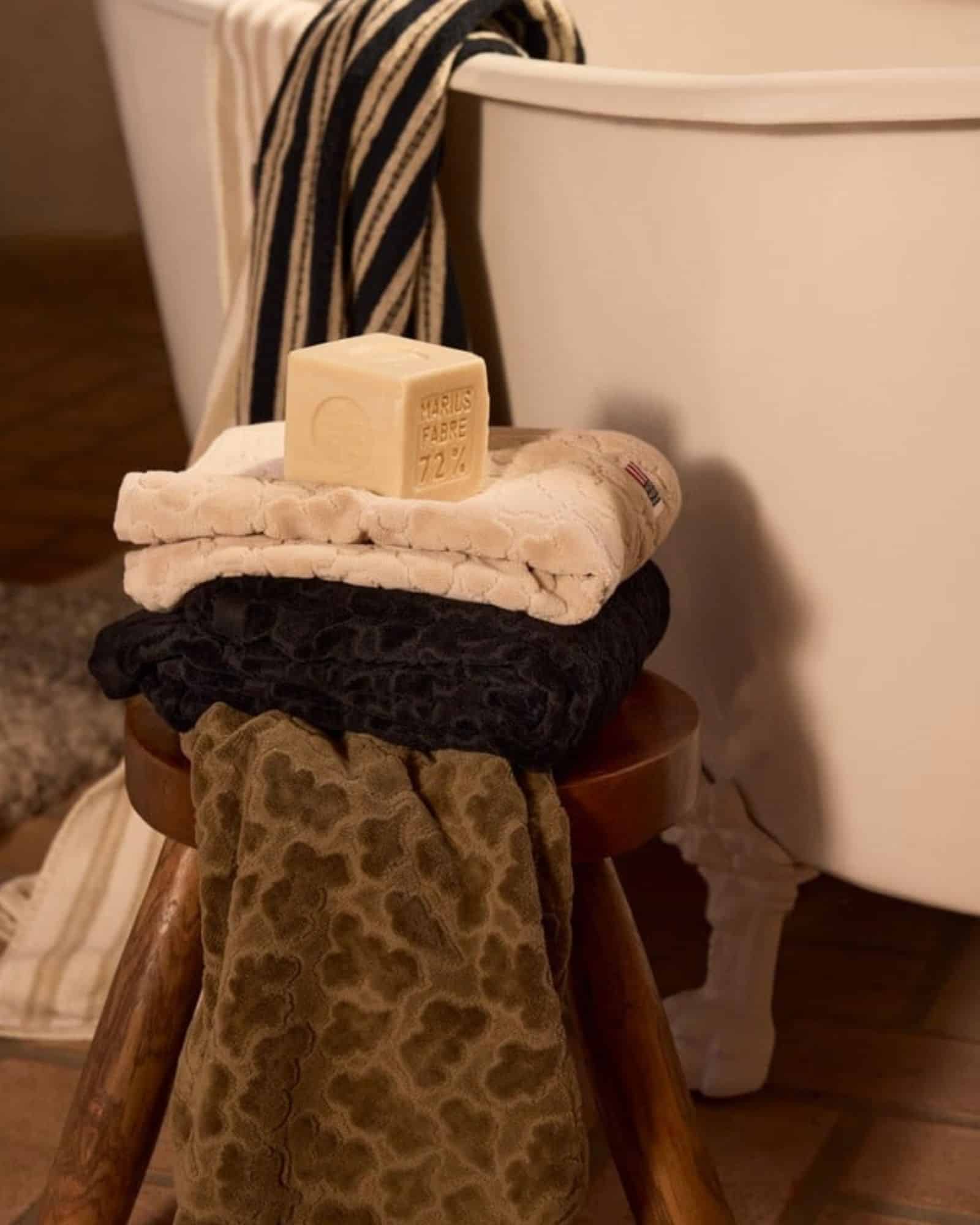 Dessutom har den en praktisk upphängningsögla med Lexington logotyp samt integrerat tvättråd, vilket gör den enkel att använda varje dag. Nedanför på framsidan finns en vävd Lexington flagga, en diskret men stilren varumärkesdetalj som ger ett elegant helhetsintryck. Handduken är dessutom Oeko Tex certifierad och tillverkad i Portugal, ett land välkänt för sitt högkvalitativa textilhantverk. Det gör den till ett tryggt val för både dig och miljön. Slutligen finns velour jacquard leaves handduken i flera färger och storlekar. Därmed kan du enkelt skapa ett enhetligt, stilrent och lyxigt badrumsuttryck, helt i din egen stil.