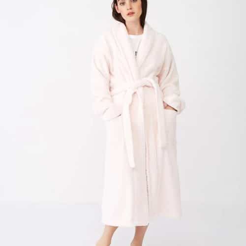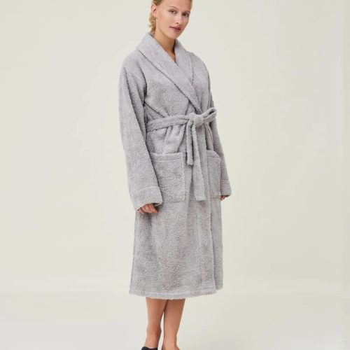 Fluffig och skön morgonrock i 90% bomull och 10% polyester med sjalkrage och fickor framtill. En riktigt skön badrock i unisex-modell; för damer rekommenderas 1-2 storlekar mindre än normalt. Längden från högsta punkten på axeln är 124 cm i storlek Medium.