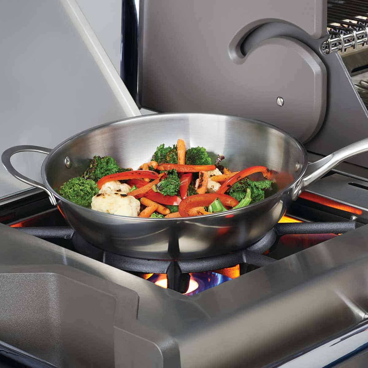 Gedigen rostfri wokpanna med en diameter på 30 cm.
